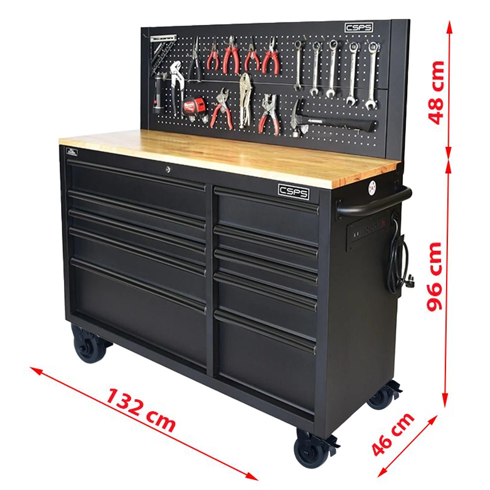 Product dimension: 132cm W x 46cm D x 144cm H (including caster and pegboard height)