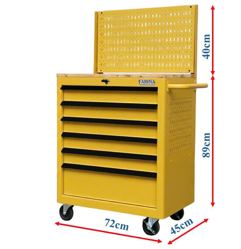 Fabina Matt Yellow tool cabinet including pegboard - 6 drawers