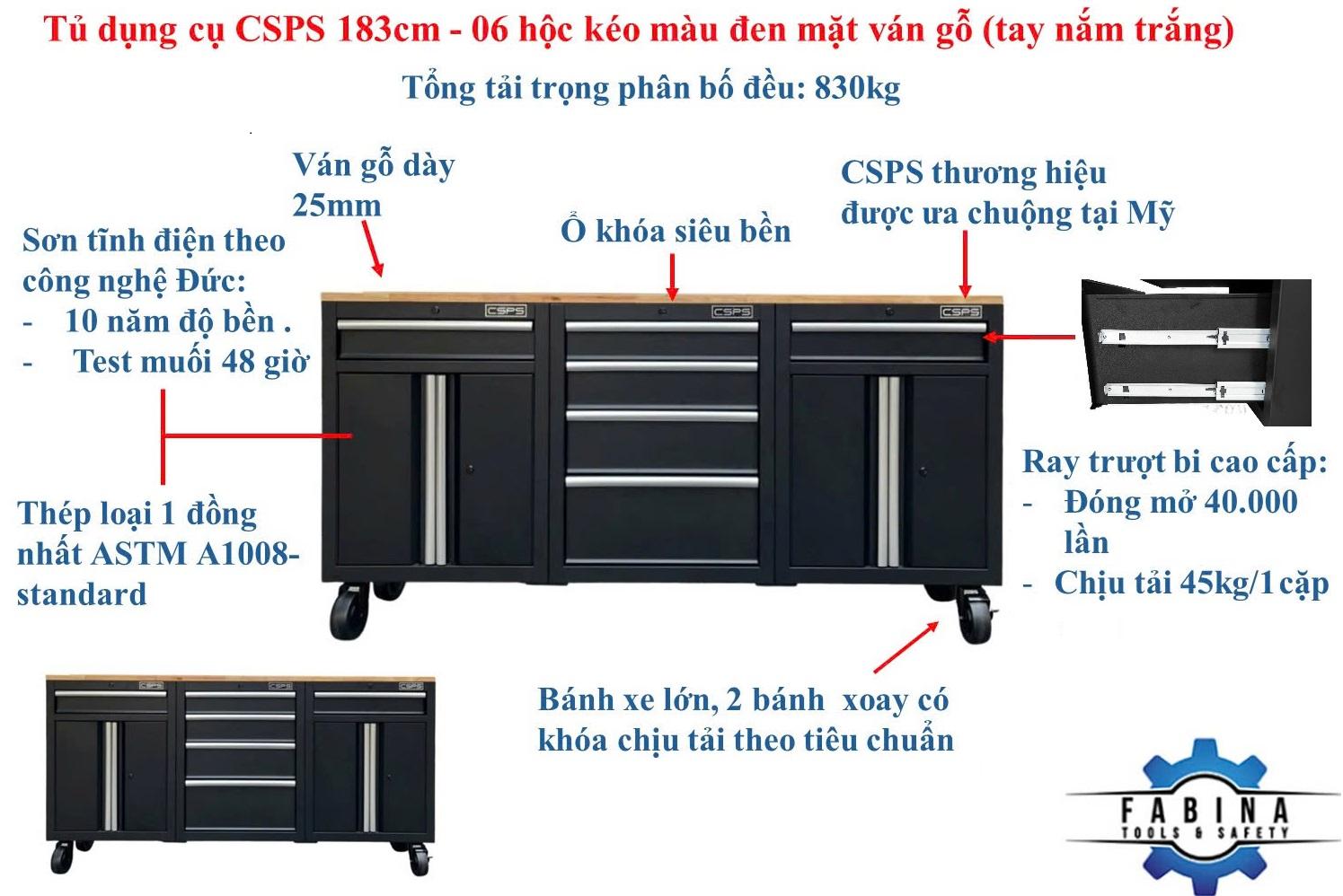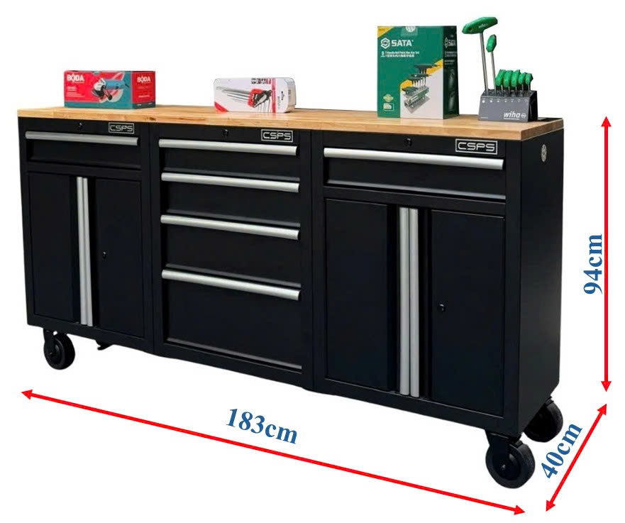 Set of 3 CSPS 183cm black tool cabinets with wooden panel - 06 drawers (white handle)