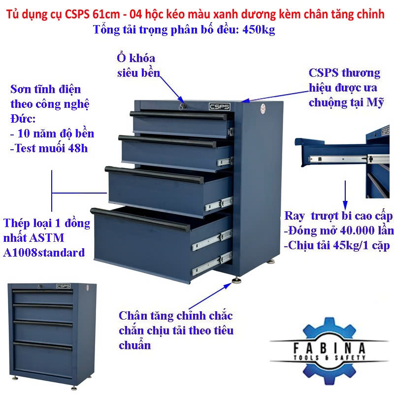 CSPS Matt Blue tool cabinet 61cm - 04 drawers including Leveling feet