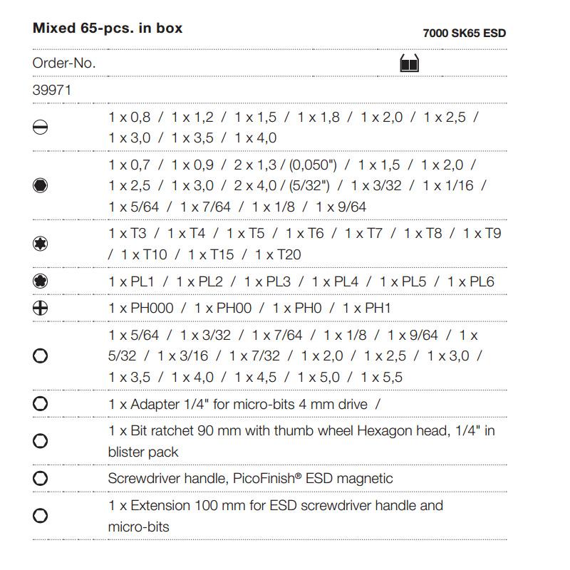 Bộ tua vít 65 chi tiết ESD Wiha 39971