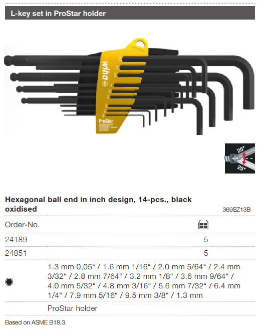 1x Allen key, hexagon ball head, black oxidized, inch version 7.9 mm 5/16" (01429)