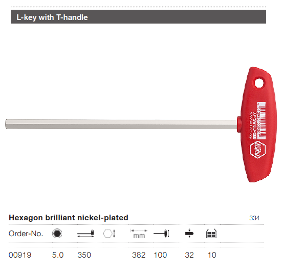Tay vặn lục giác chữ T Wiha 00919 (5 x 350 x 382)