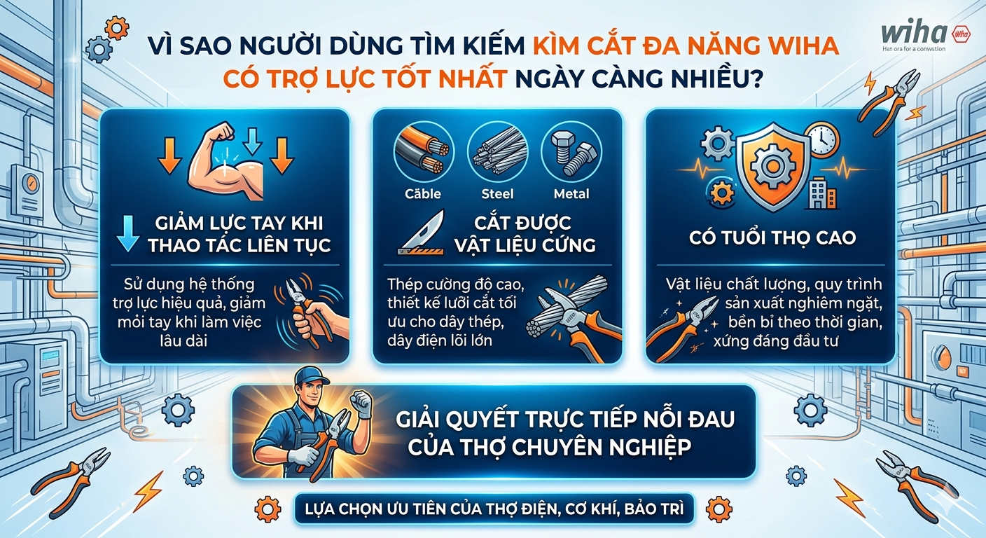 Trước khi đi sâu vào từng sản phẩm cụ thể, chúng ta cần hiểu lý do vì sao cụm từ kìm cắt đa năng Wiha có trợ lực tốt nhất lại trở thành từ khóa được tìm kiếm nhiều trong ngành cơ khí và điện công nghiệp.