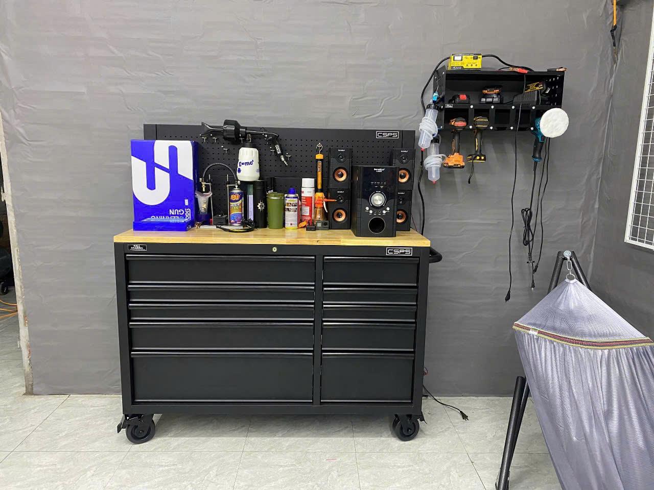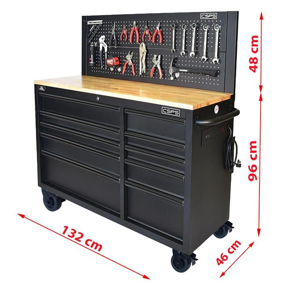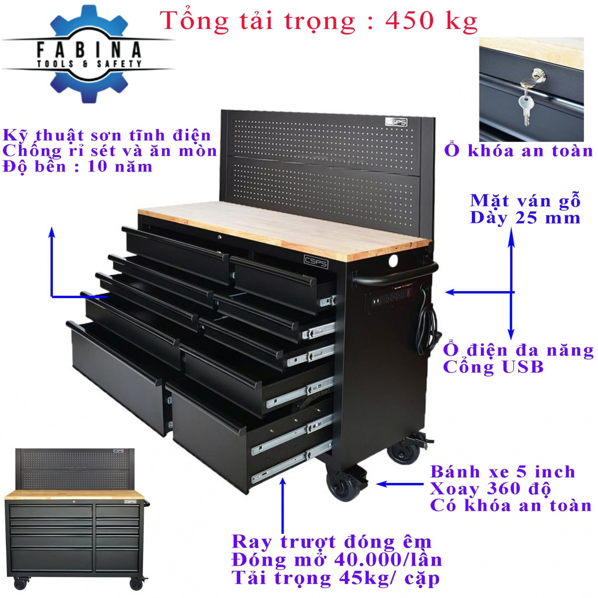 Tủ đồ nghề, tủ dụng cụ CSPS 132cm – 10 hộc kéo. Chứa dụng cụ, đồ nghề, văn phòng phẩm. Tủ di động, phù hợp với nhà máy, garage, cửa hàng, văn phòng. Bảo hành 02 năm. Tiêu chuẩn Mỹ. Sản phẩm của CSPS. Ray trượt bi. Sơn tĩnh điện.