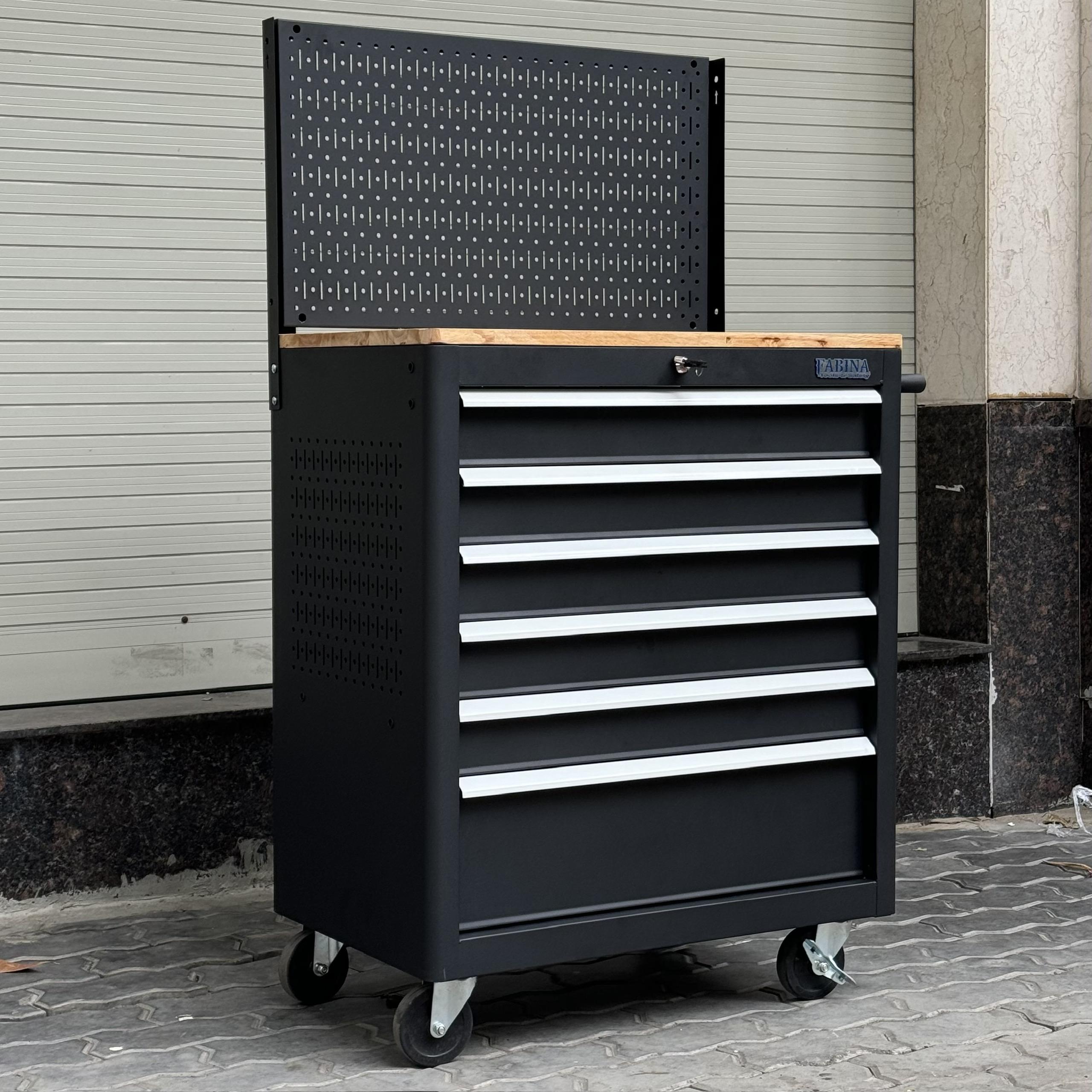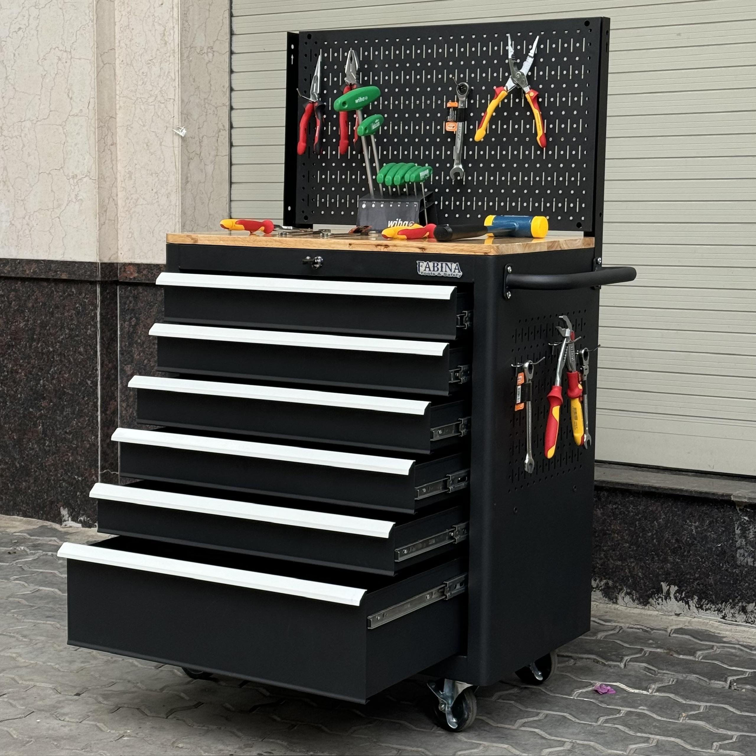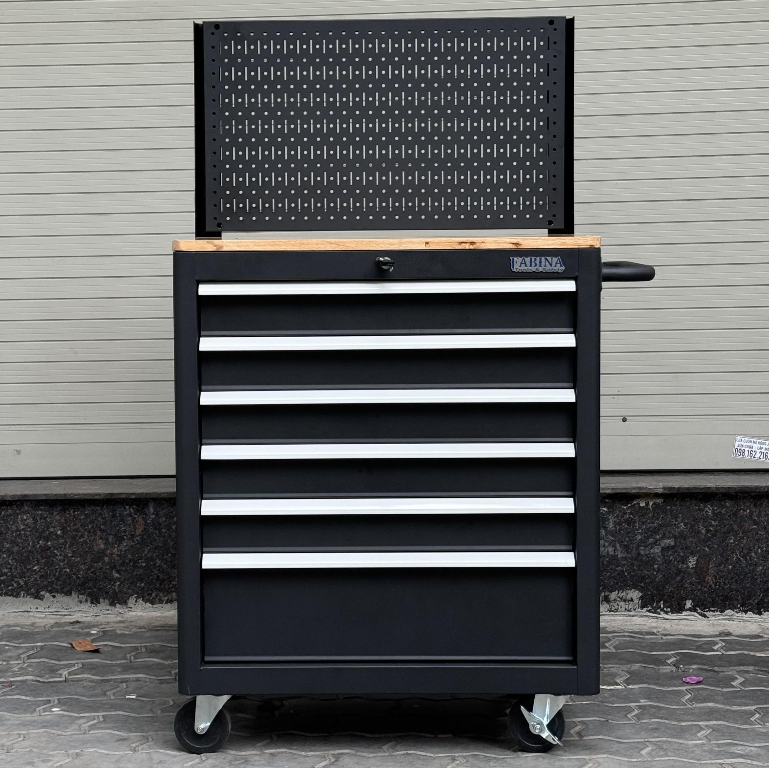 Tủ dụng cụ 6 hộc kéo màu đen kèm vách lưới Fabina