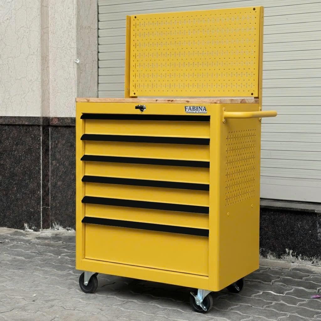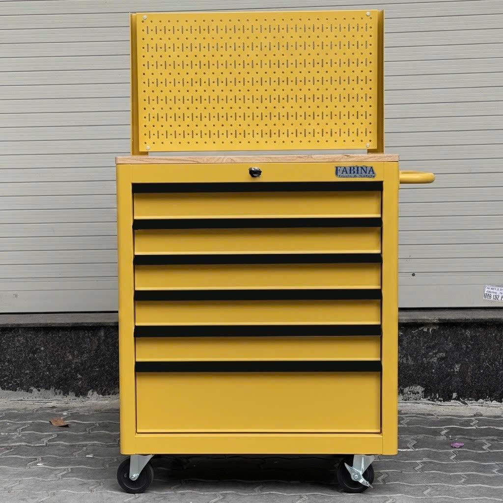 Tủ dụng cụ 6 hộc kéo màu vàng kèm vách lưới Fabina