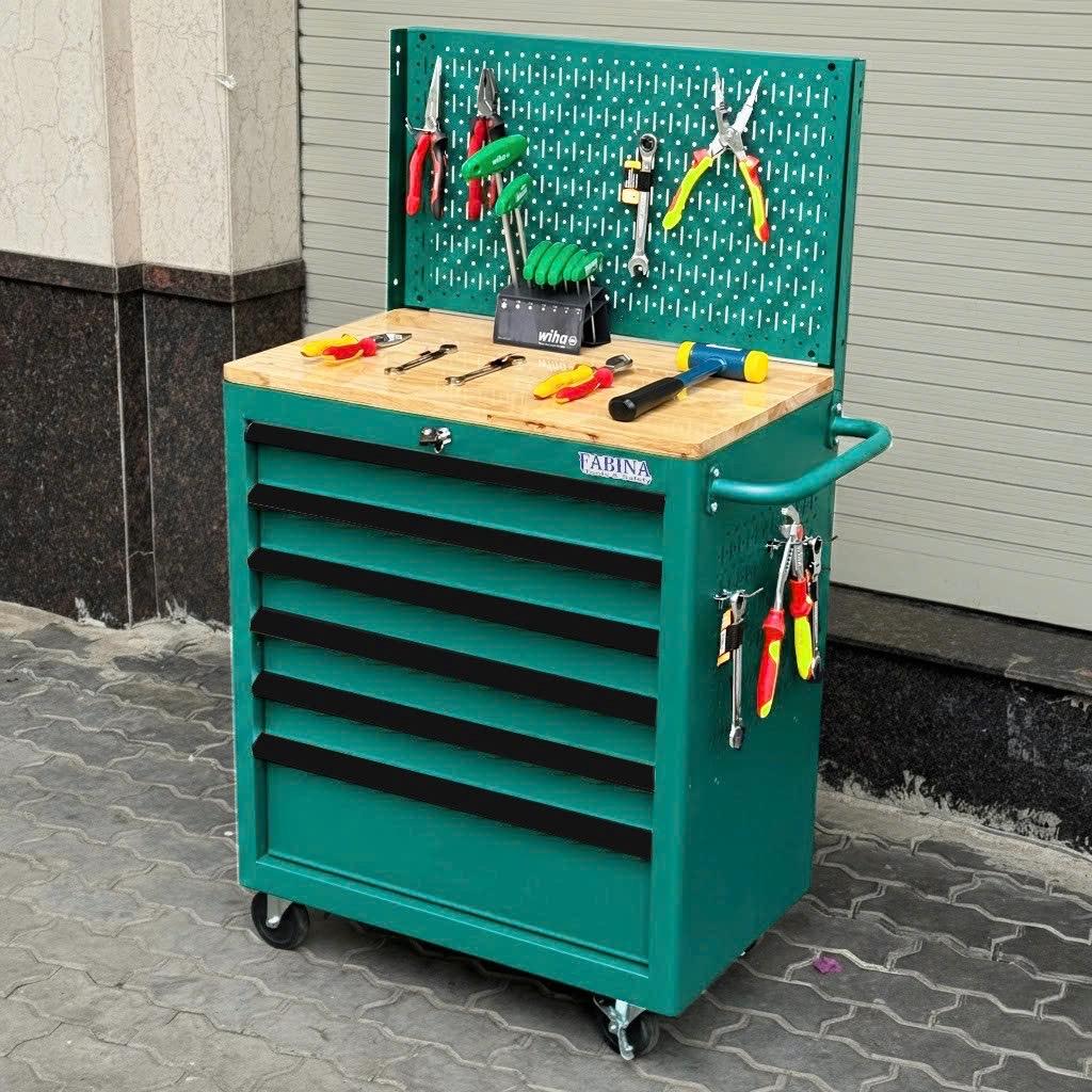 Tủ dụng cụ 6 hộc kéo màu xanh lá kèm vách lưới Fabina