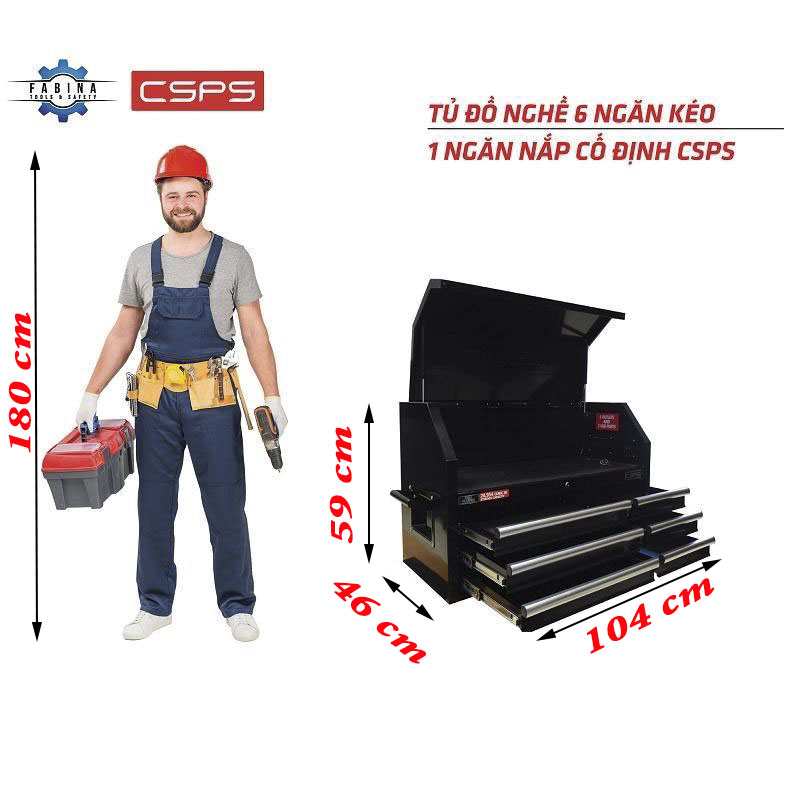 Tủ đồ nghề, tủ dụng cụ di động CSPS 104cm, giúp bạn sắp xếp khu vực làm việc hiệu quả, là một trang bị cần thiết cho nhà máy, garage, cửa hàng hay văn phòng làm việc. Bảo hành 02 năm. Tiêu chuẩn Mỹ. Ray trượt bi. Sơn tĩnh điện. .