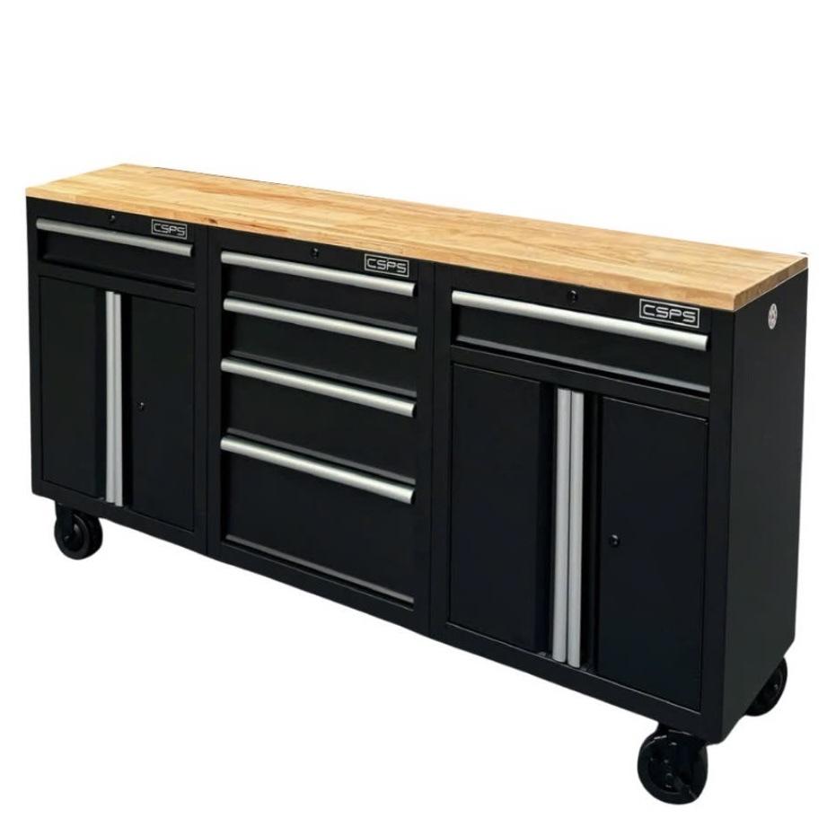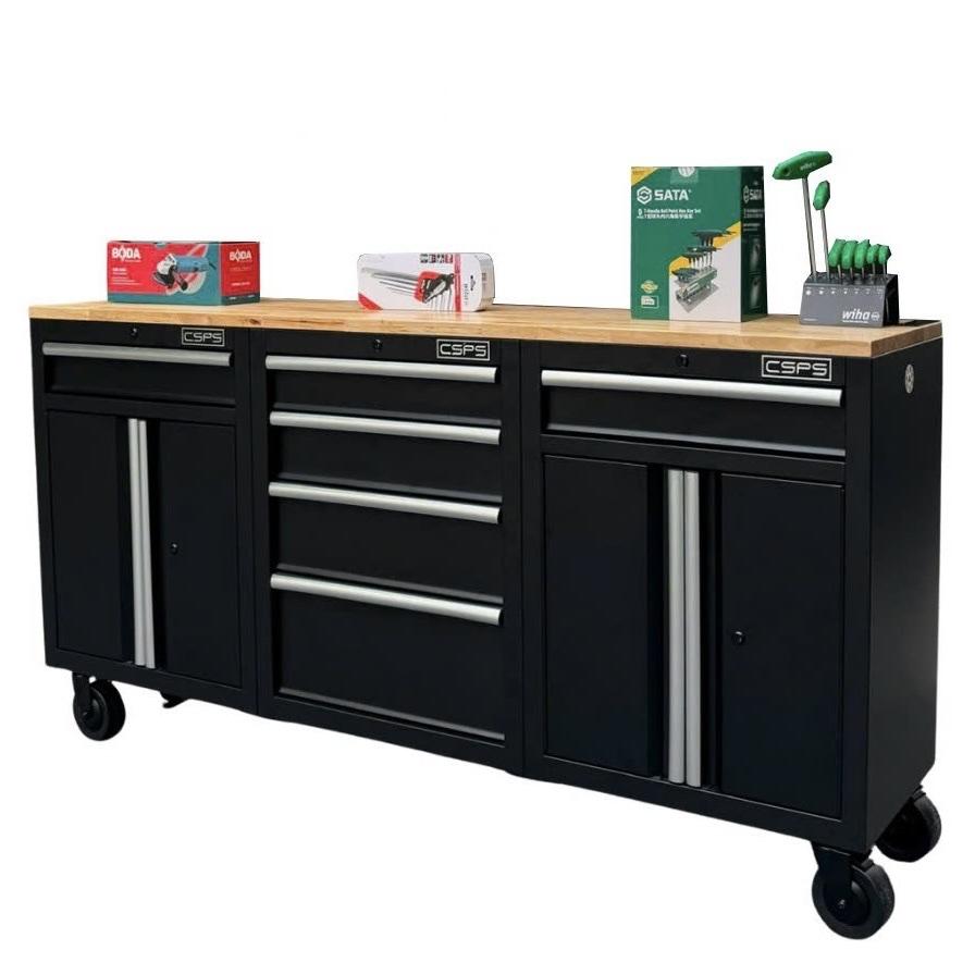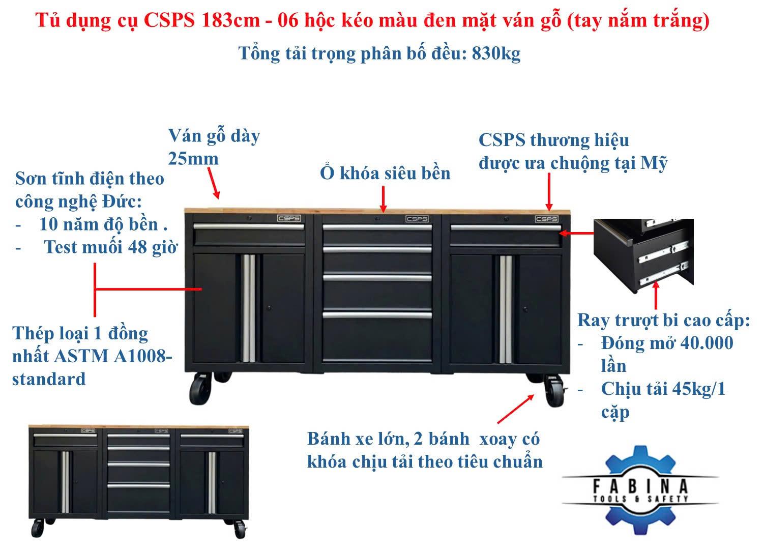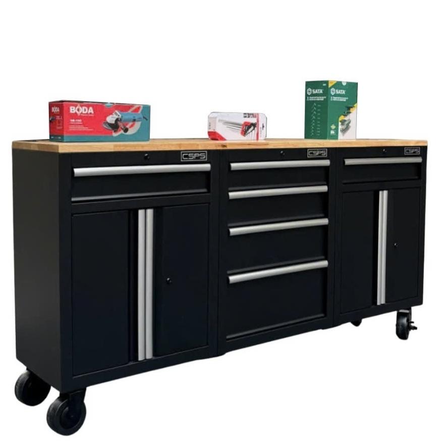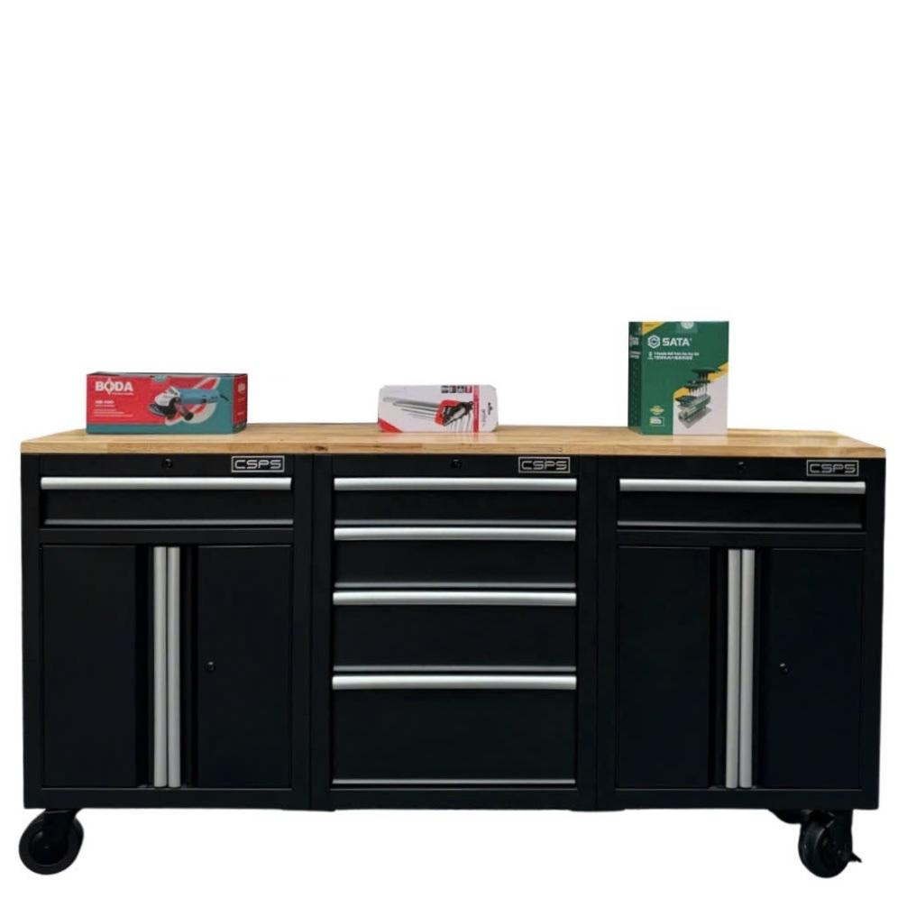 Tủ dụng cụ CSPS 183cm - 06 hộc kéo màu đen mặt ván gỗ (tay cầm trắng)