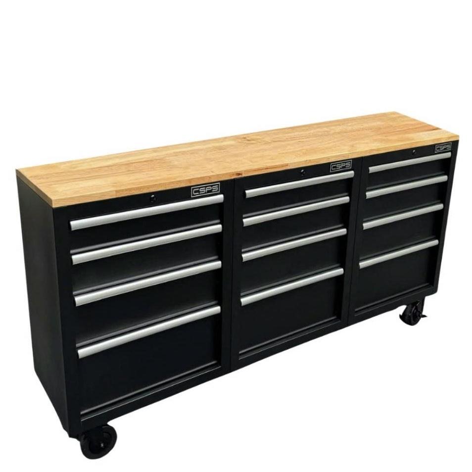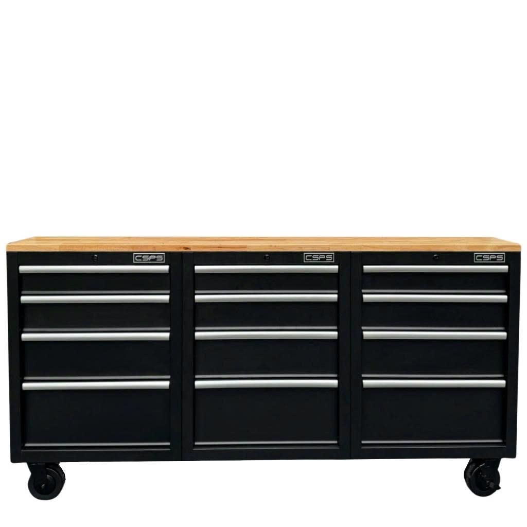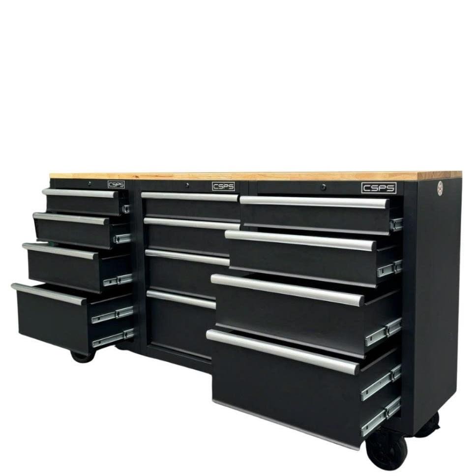 Tủ dụng cụ CSPS 183cm - 12 hộc kéo màu đen mặt ván gỗ (tay cầm trắng)
