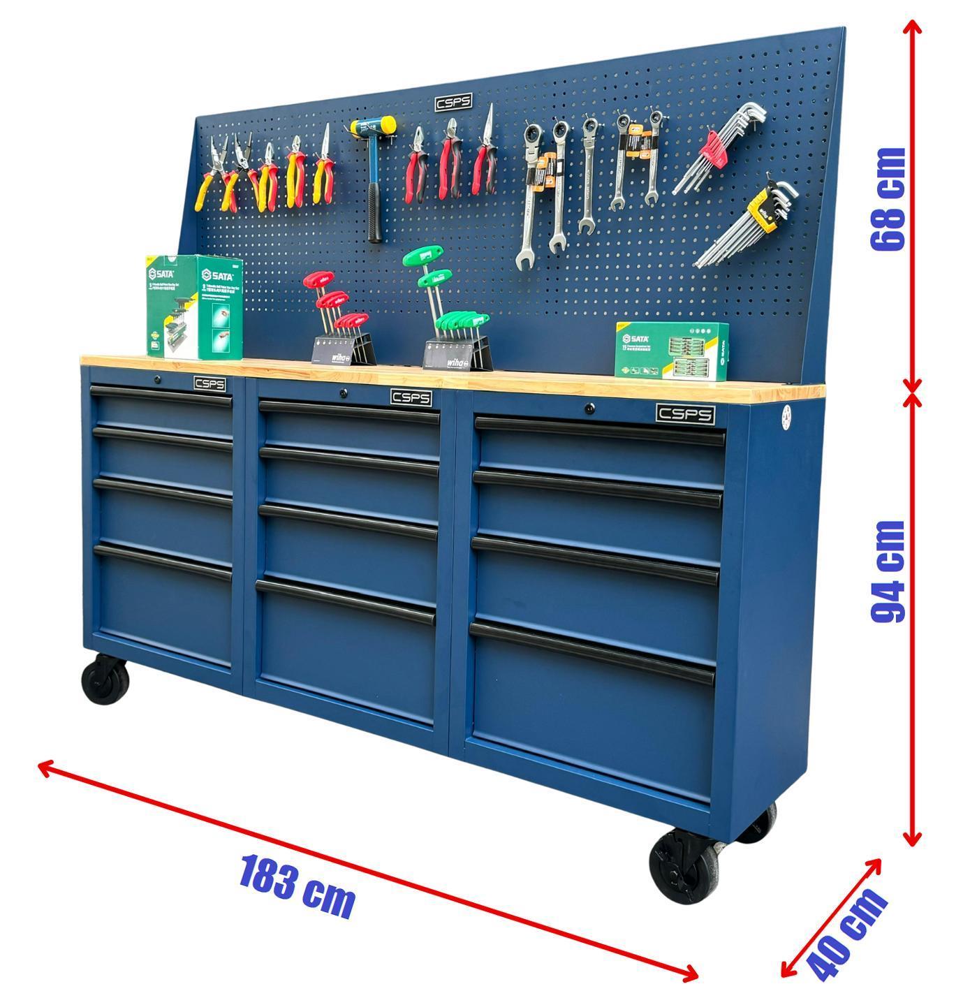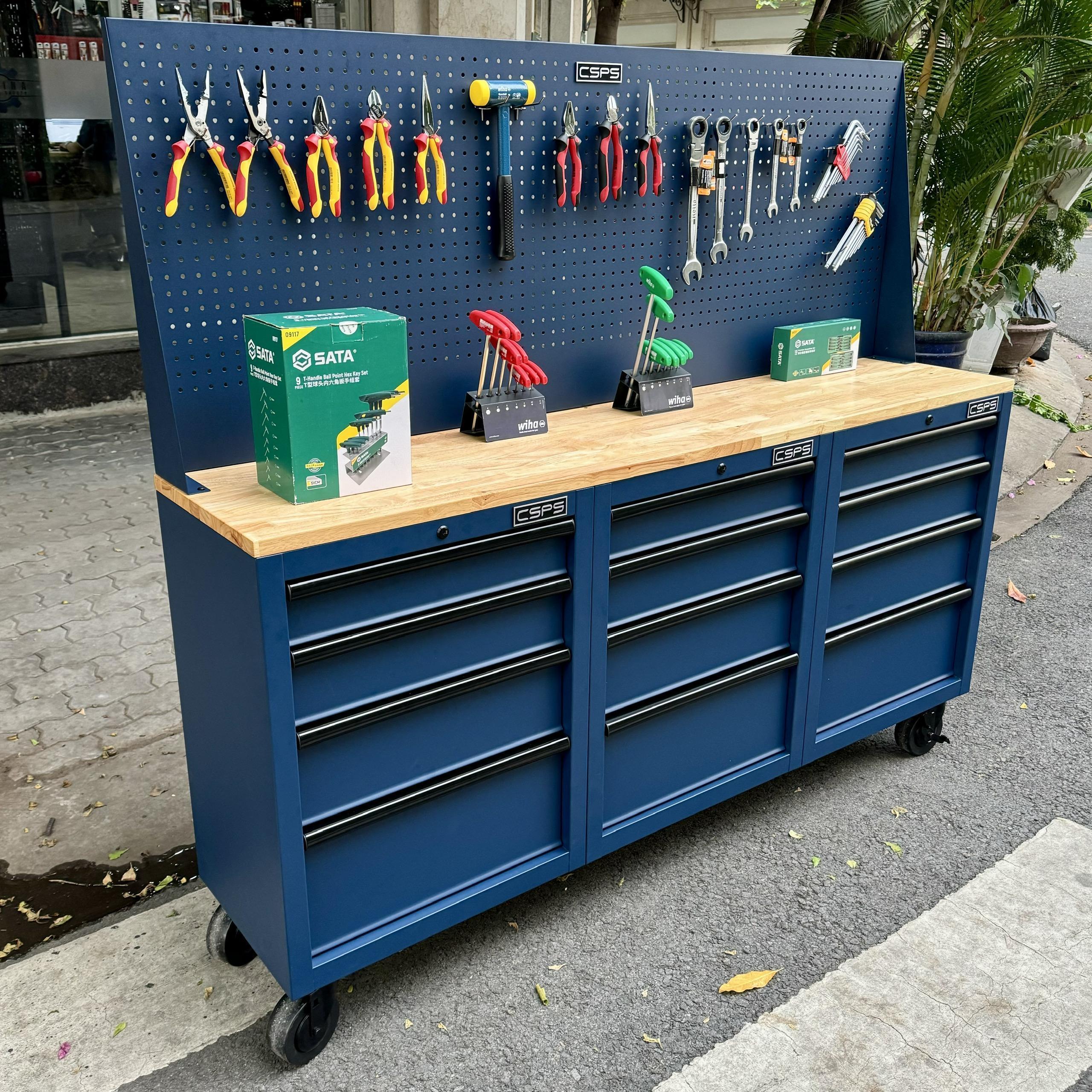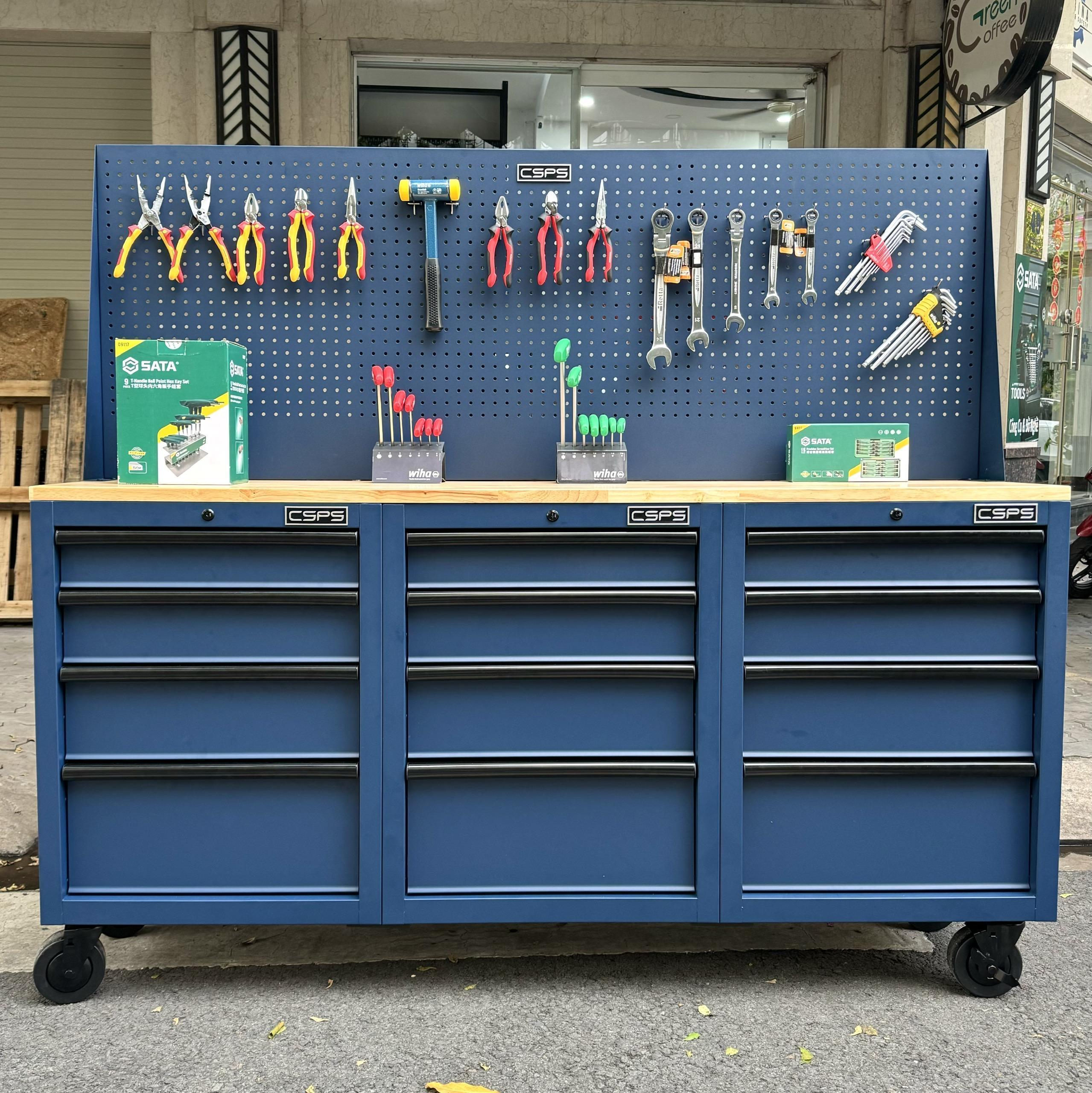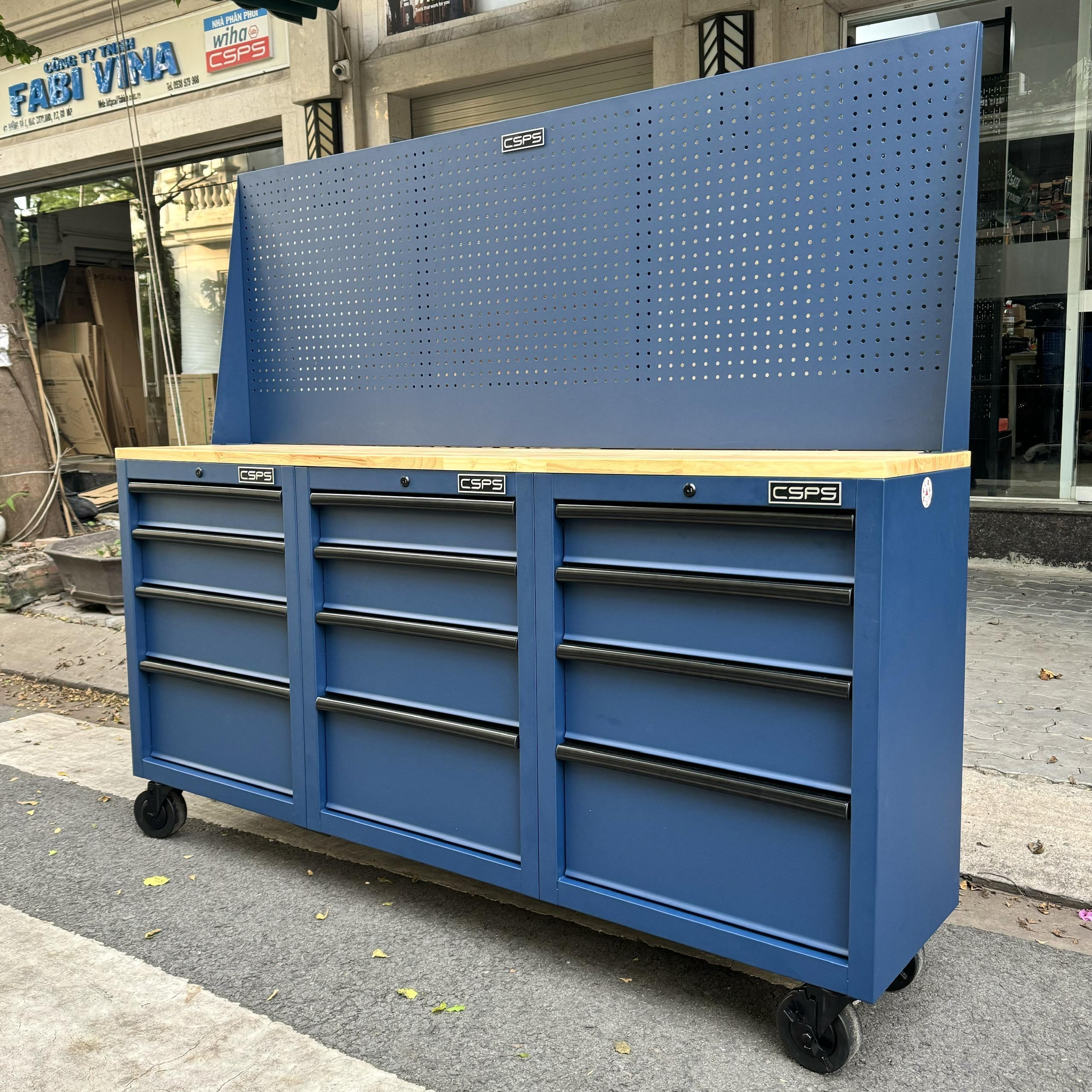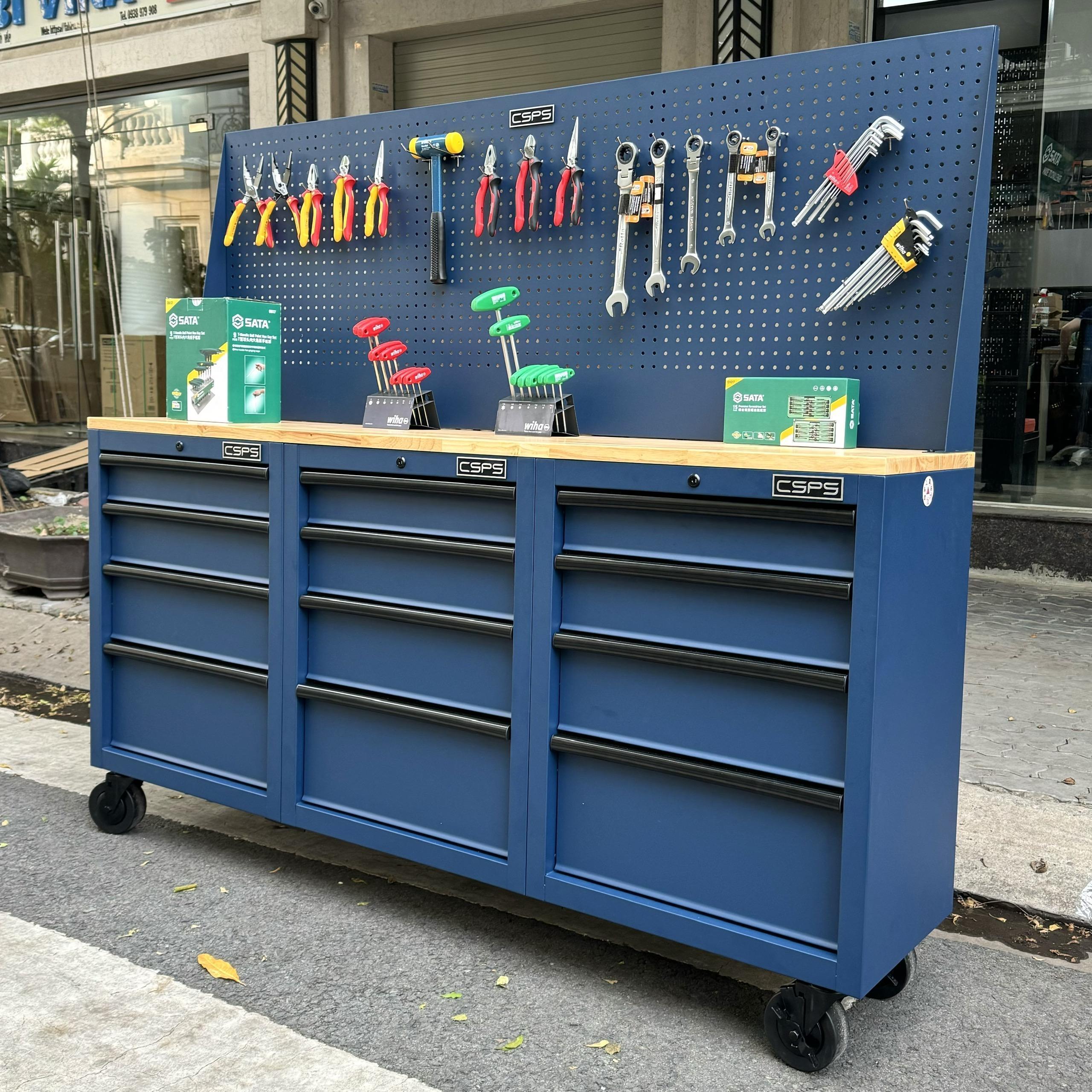 Tủ dụng cụ CSPS 183cm - 12 hộc kéo màu xanh dương kèm vách lưới