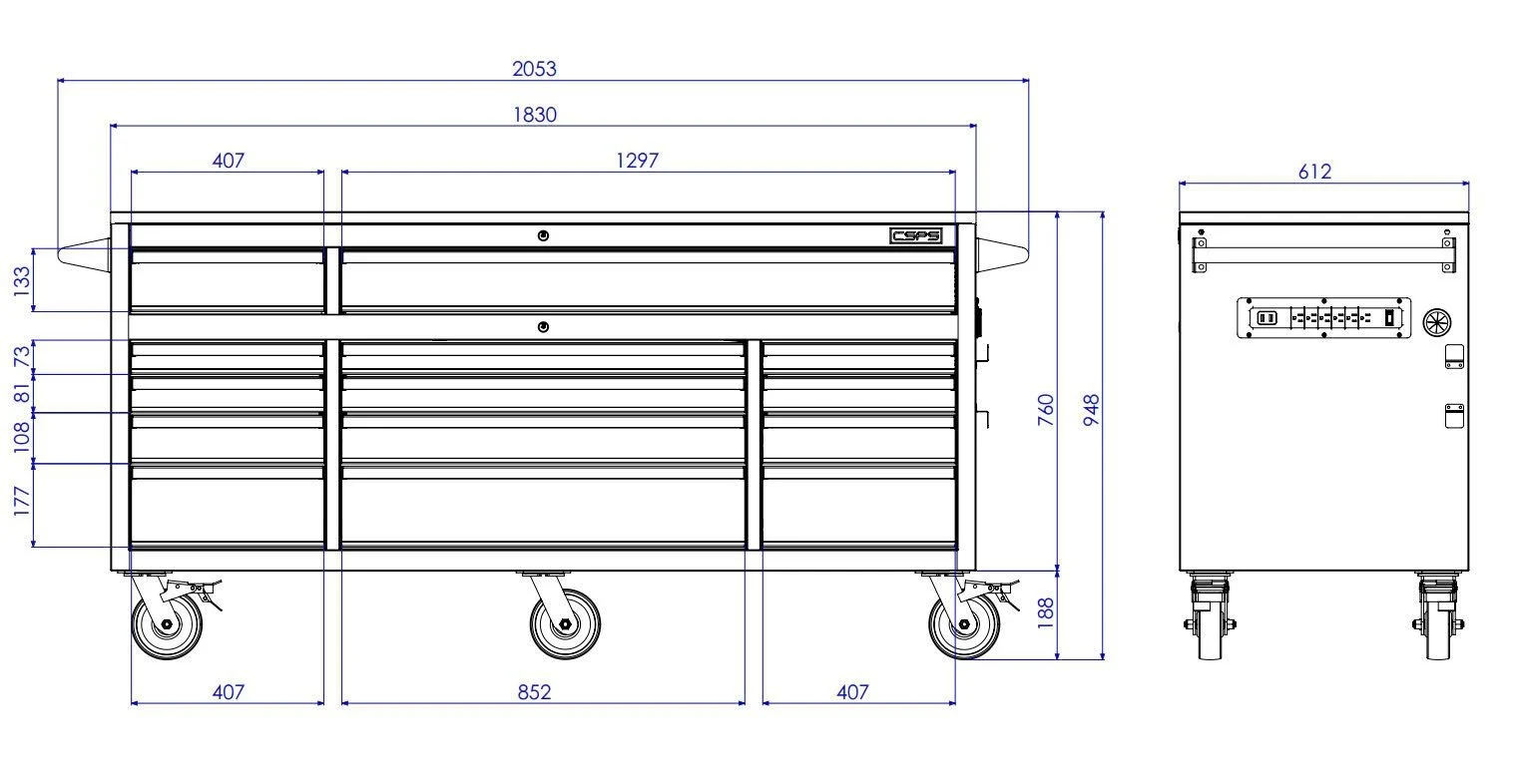 - Từ khóa: Tủ dụng cụ CSPS, Tủ đồ nghề CSPS, Tủ dụng cụ tiêu chuẩn Mỹ, Tủ CSPS, có ổ điện đa năng, có cổng USB.