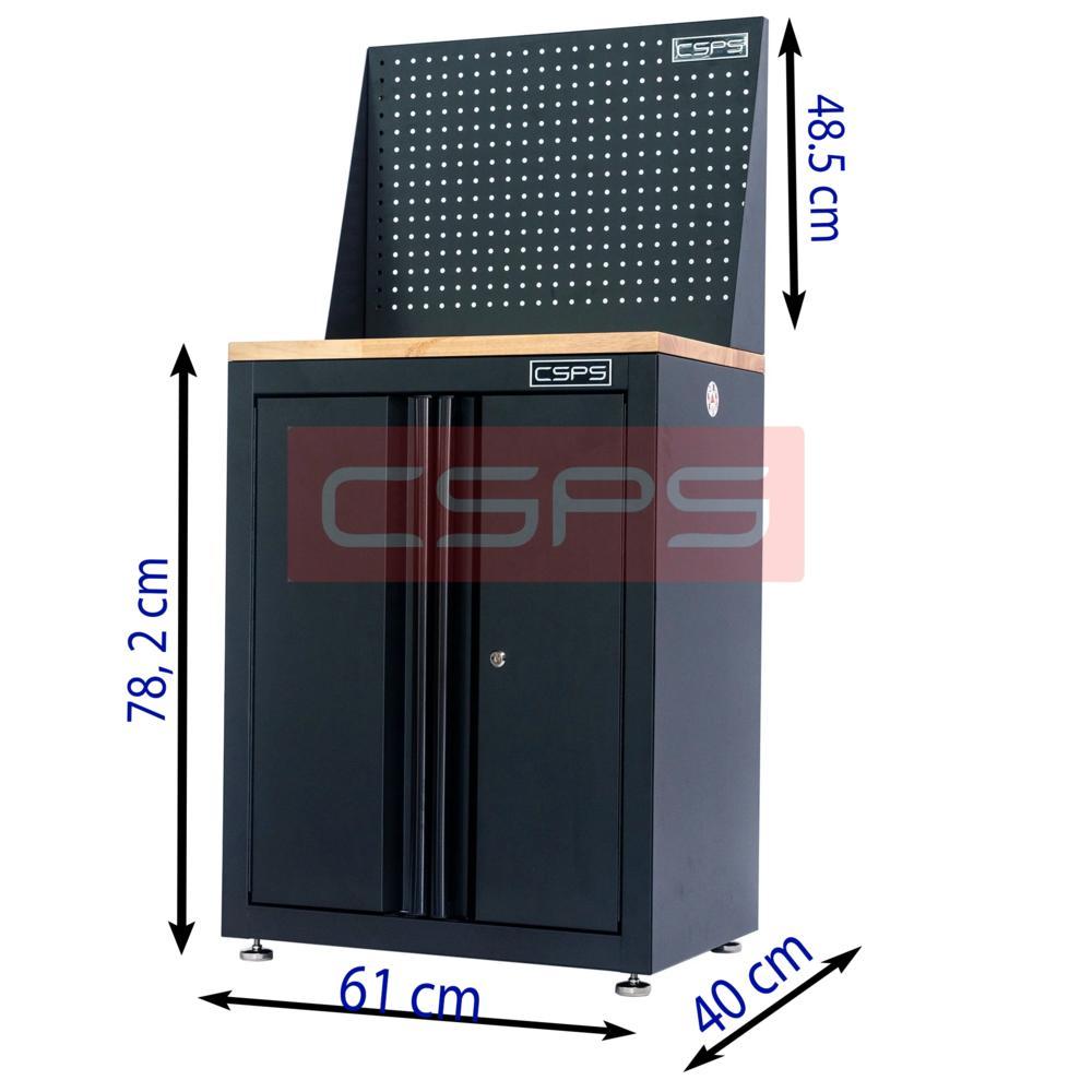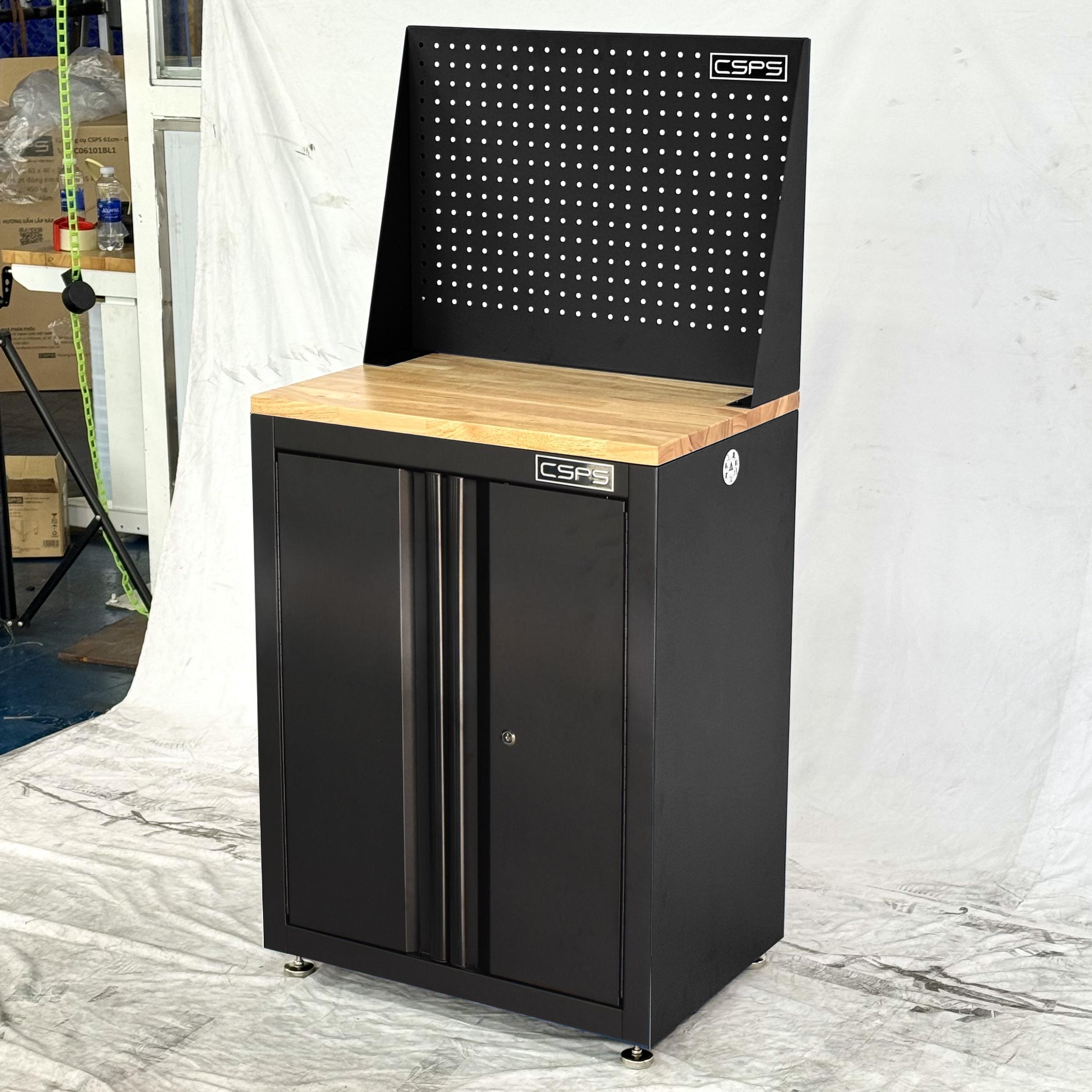 Tủ dụng cụ CSPS 61cm - 00 hộc kéo màu đen kèm ván gỗ vách lưới và chân tăng chỉnh