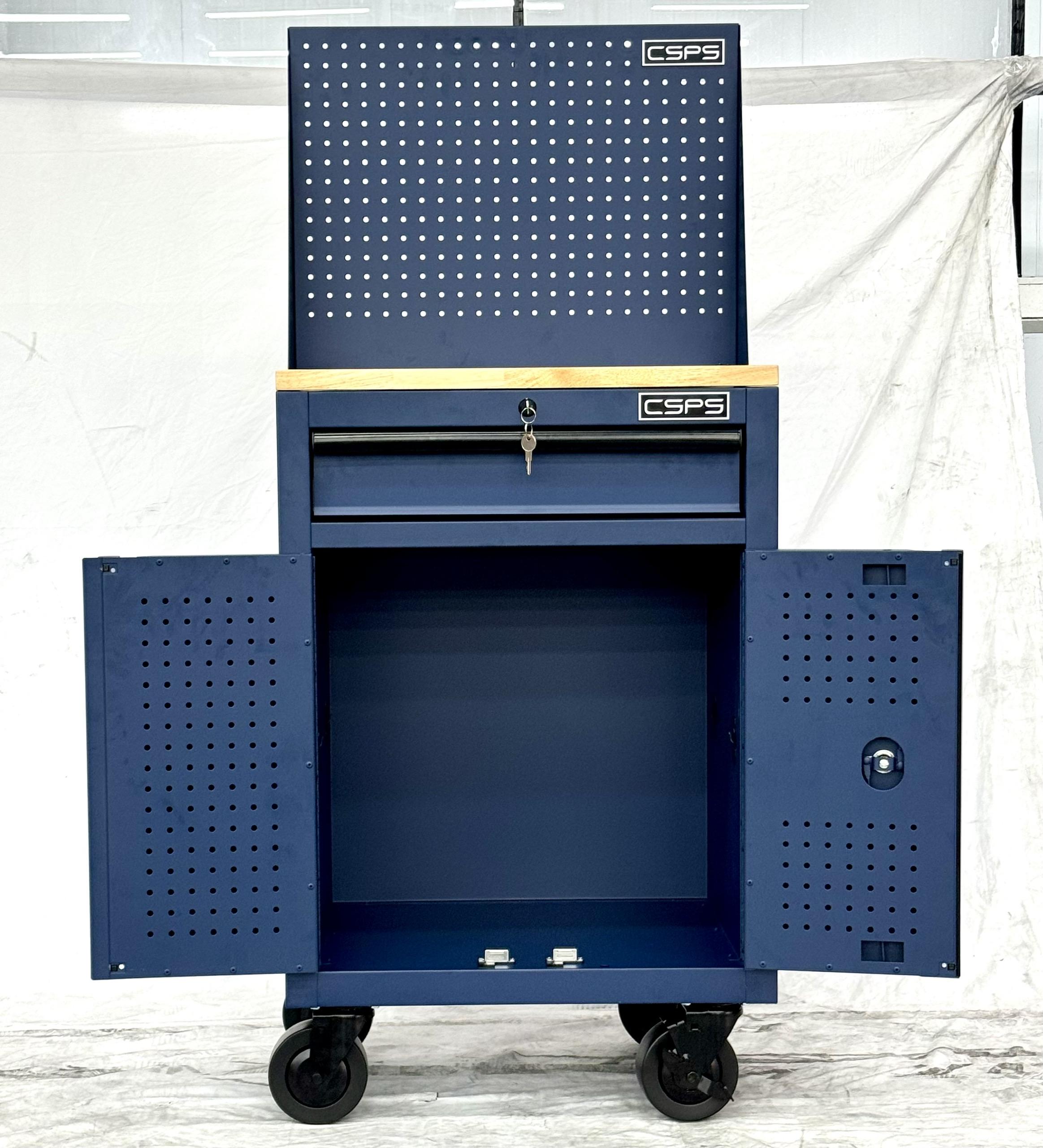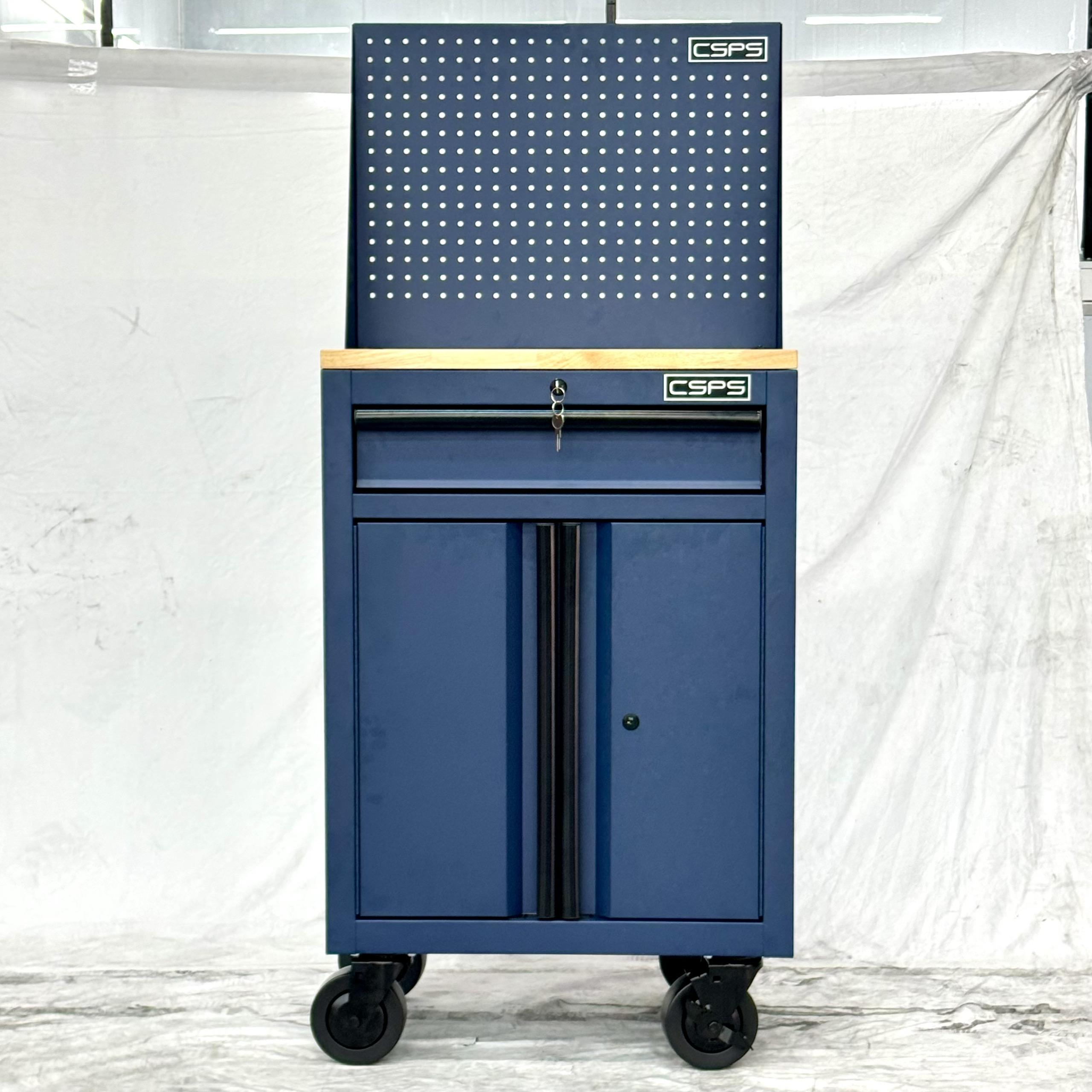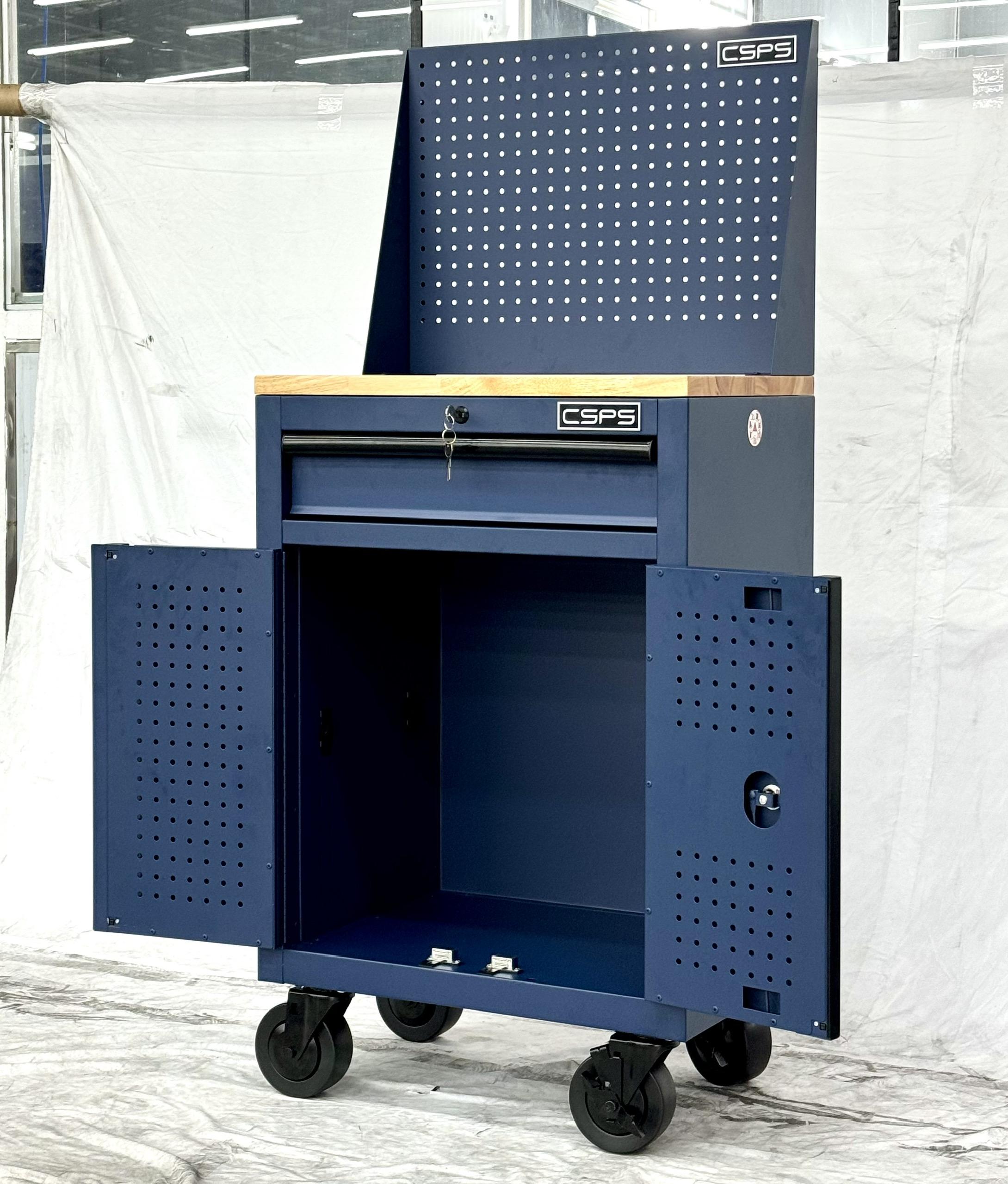 Tủ dụng cụ CSPS 61cm - 01 hộc kéo màu xanh dương kèm bánh xe, ván gỗ và vách lưới
