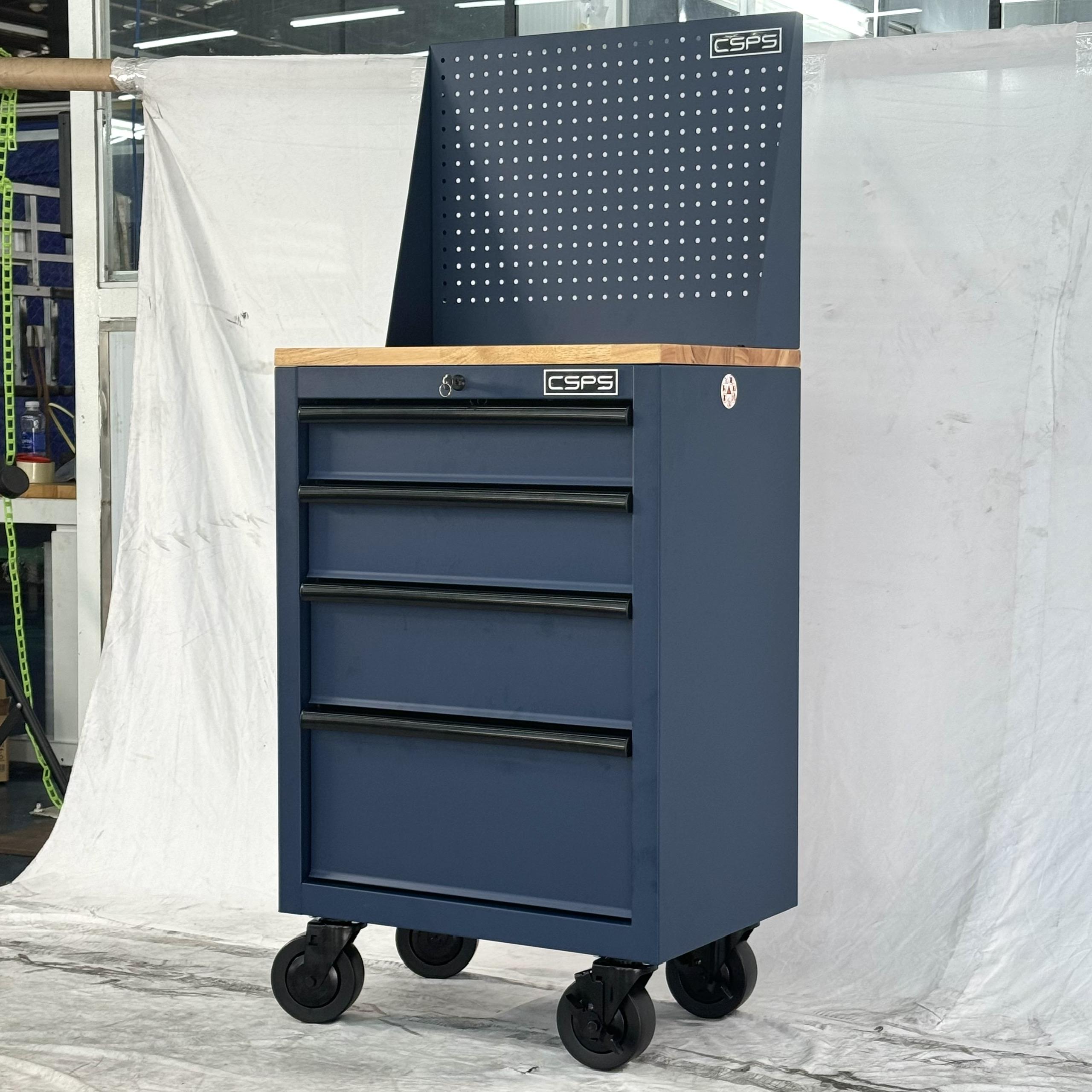 Tủ dụng cụ CSPS 61cm - 04 hộc kéo màu xanh dương kèm bánh xe ván gỗ vách lưới