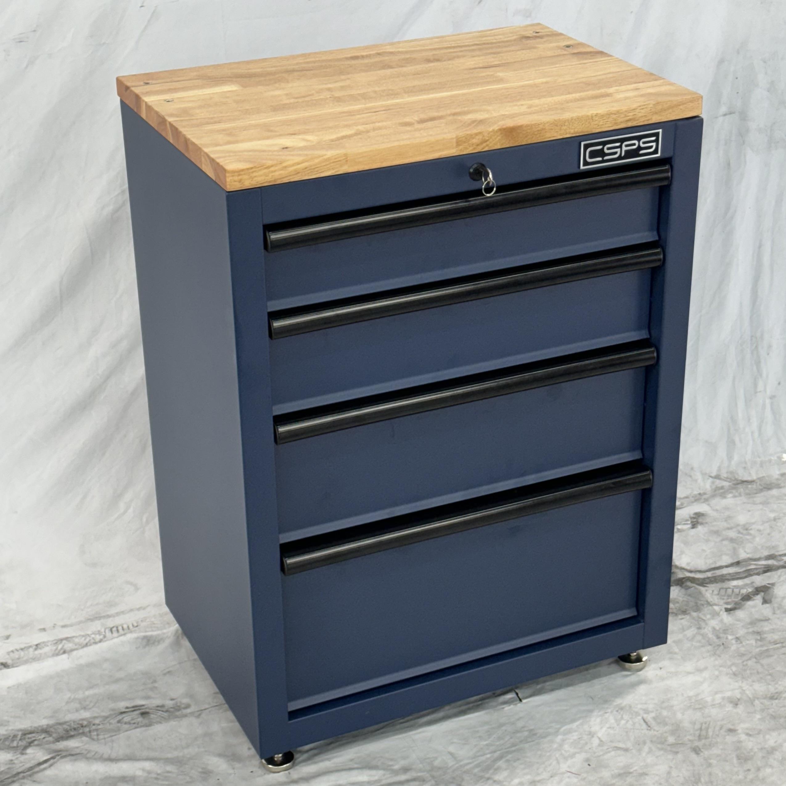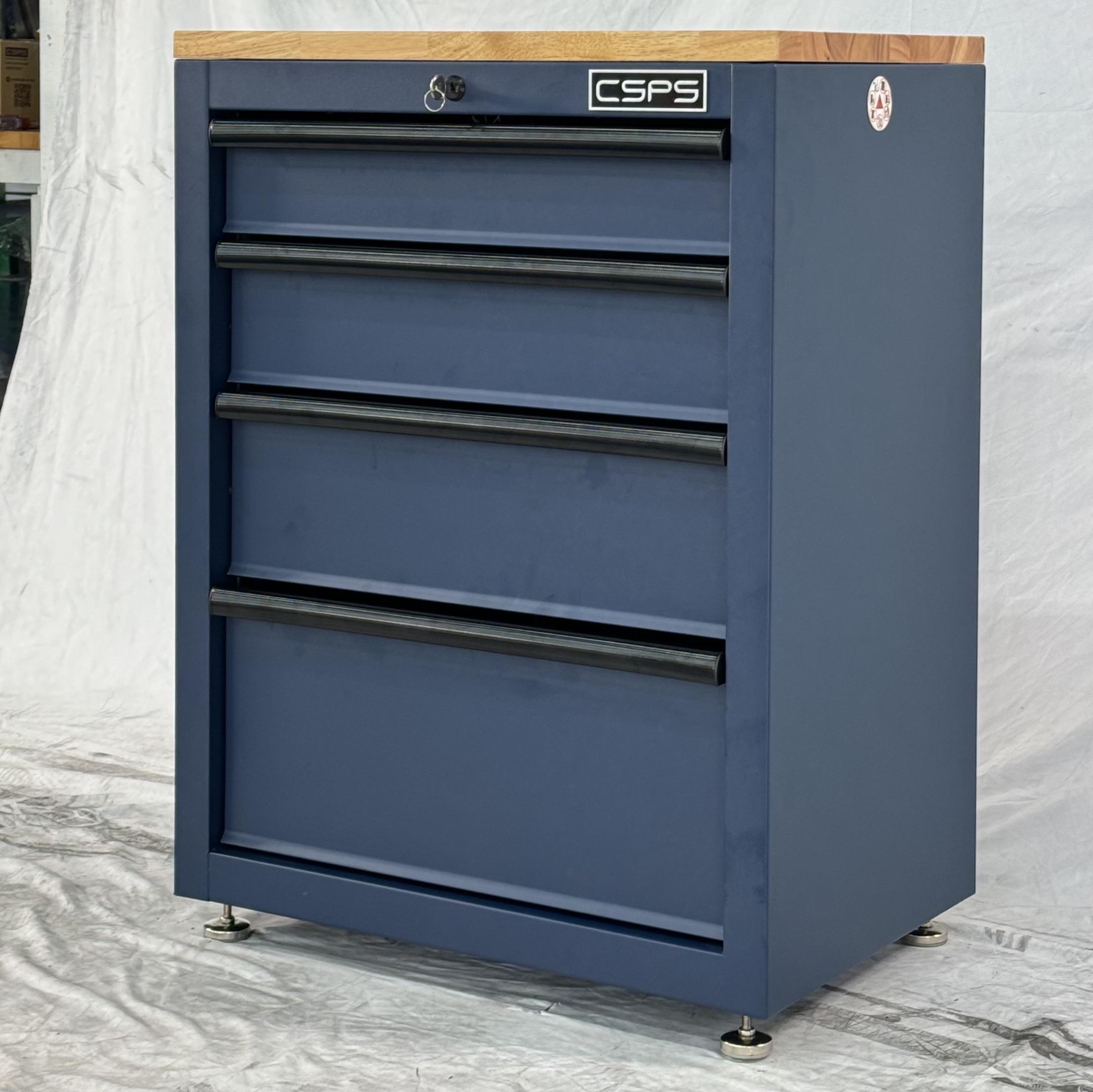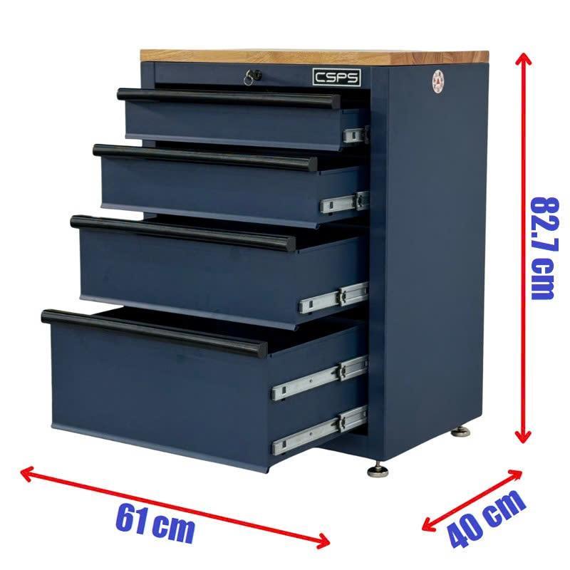Tủ dụng cụ CSPS 61cm - 04 hộc kéo màu xanh dương kèm ván gỗ kèm chân tăng chỉnh