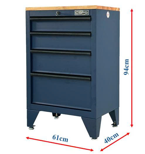 Tủ dụng cụ CSPS 61cm - 04 hộc kéo màu xanh dương kèm ván gỗ và chân tủ