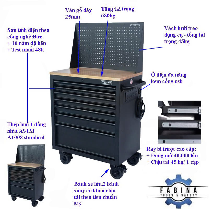 Tủ dụng cụ CSPS 76 cm kết hợp vách lưới – 05 hộc kéo là một thiết kế mới của CSPS dành riêng cho người thợ Việt Nam với các lợi ích nổi bậc: / CSPS tool cabinet 76 cm – 05 drawers is a new design of CSPS specialized for Vietnamese with outstanding benefits: