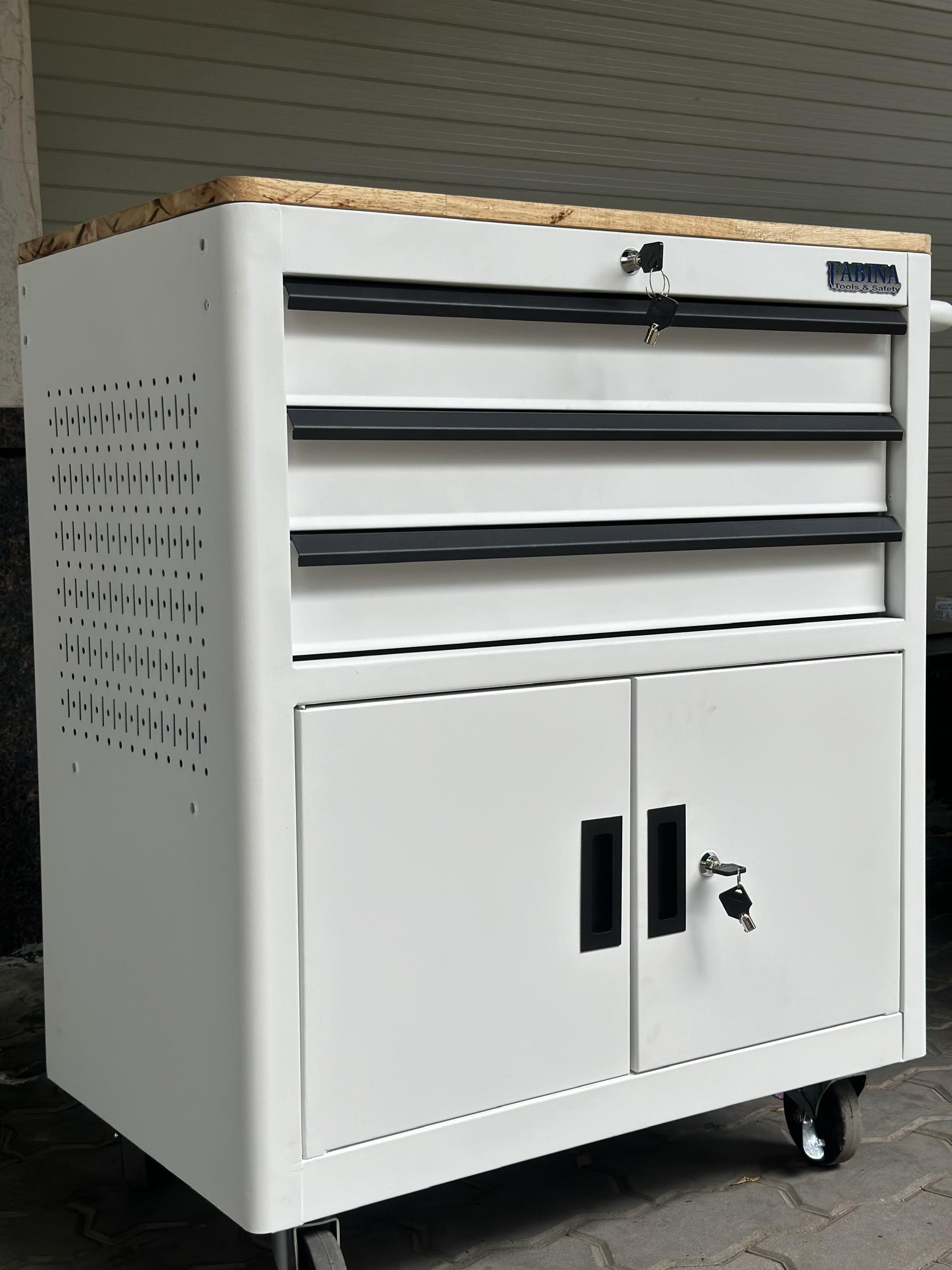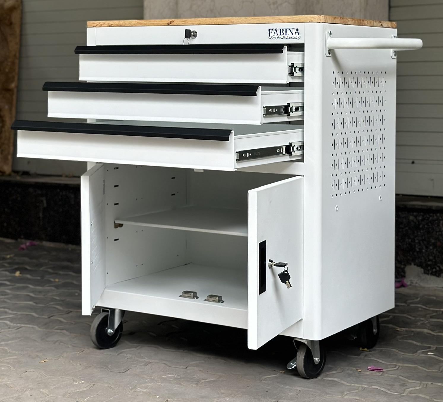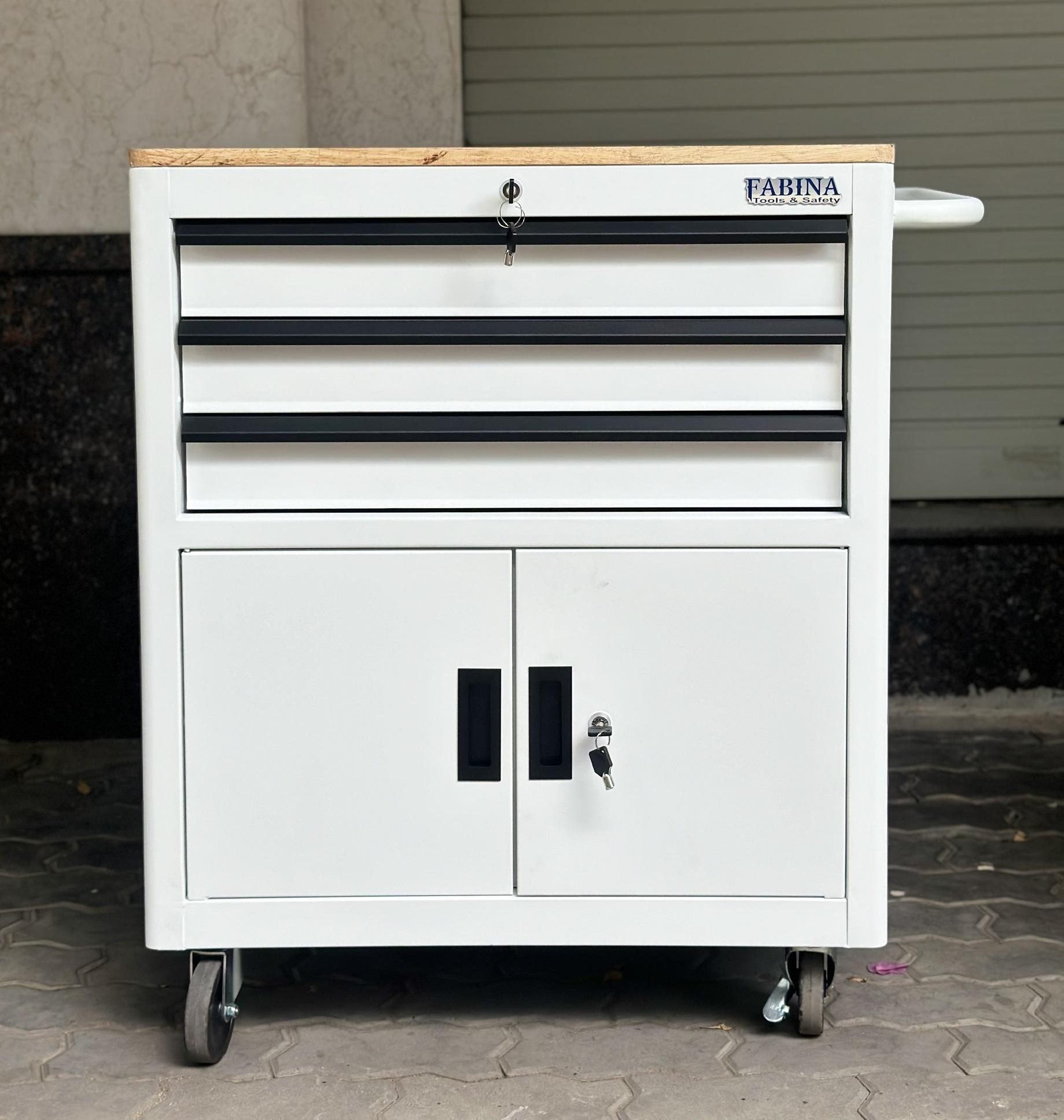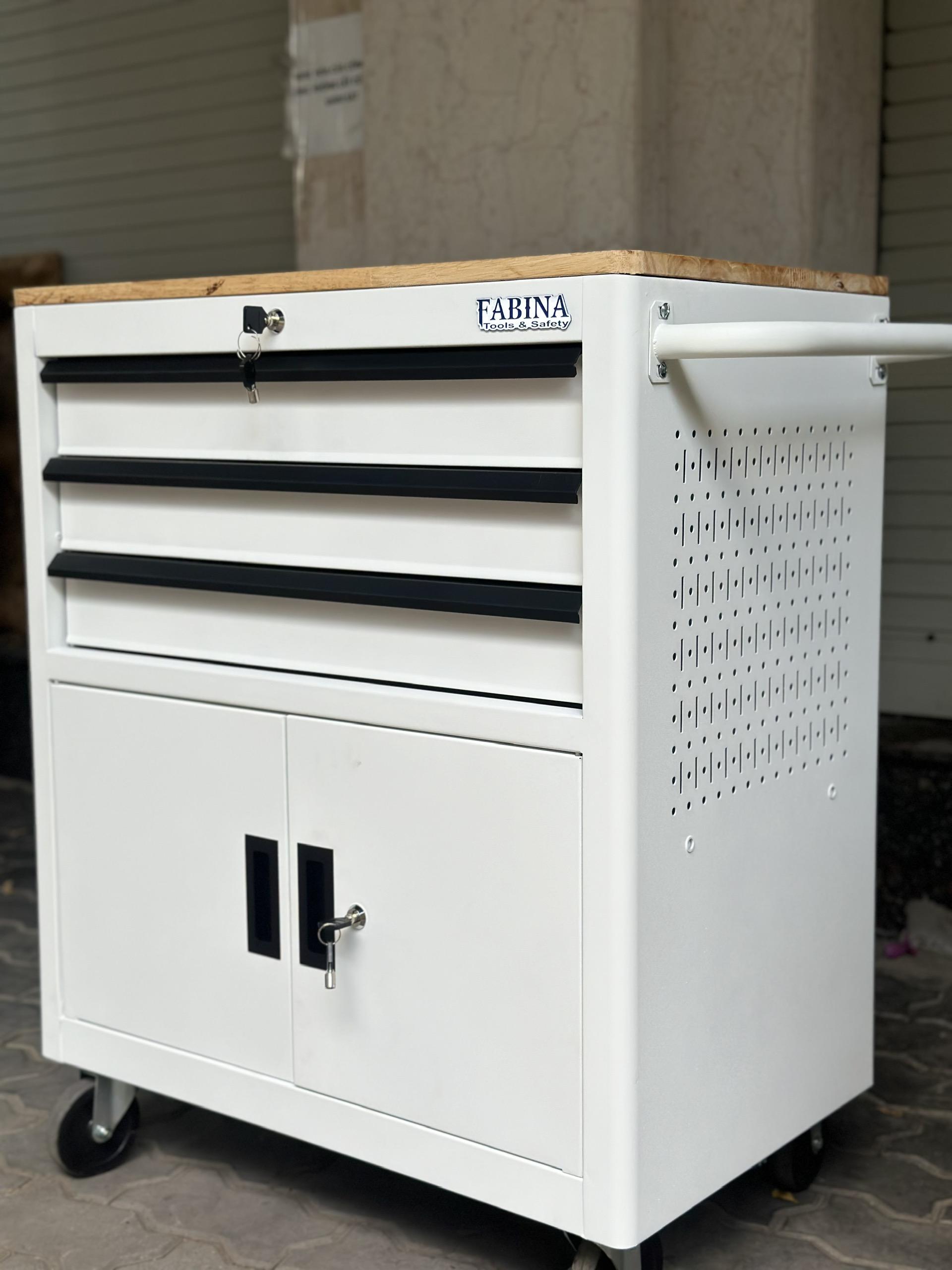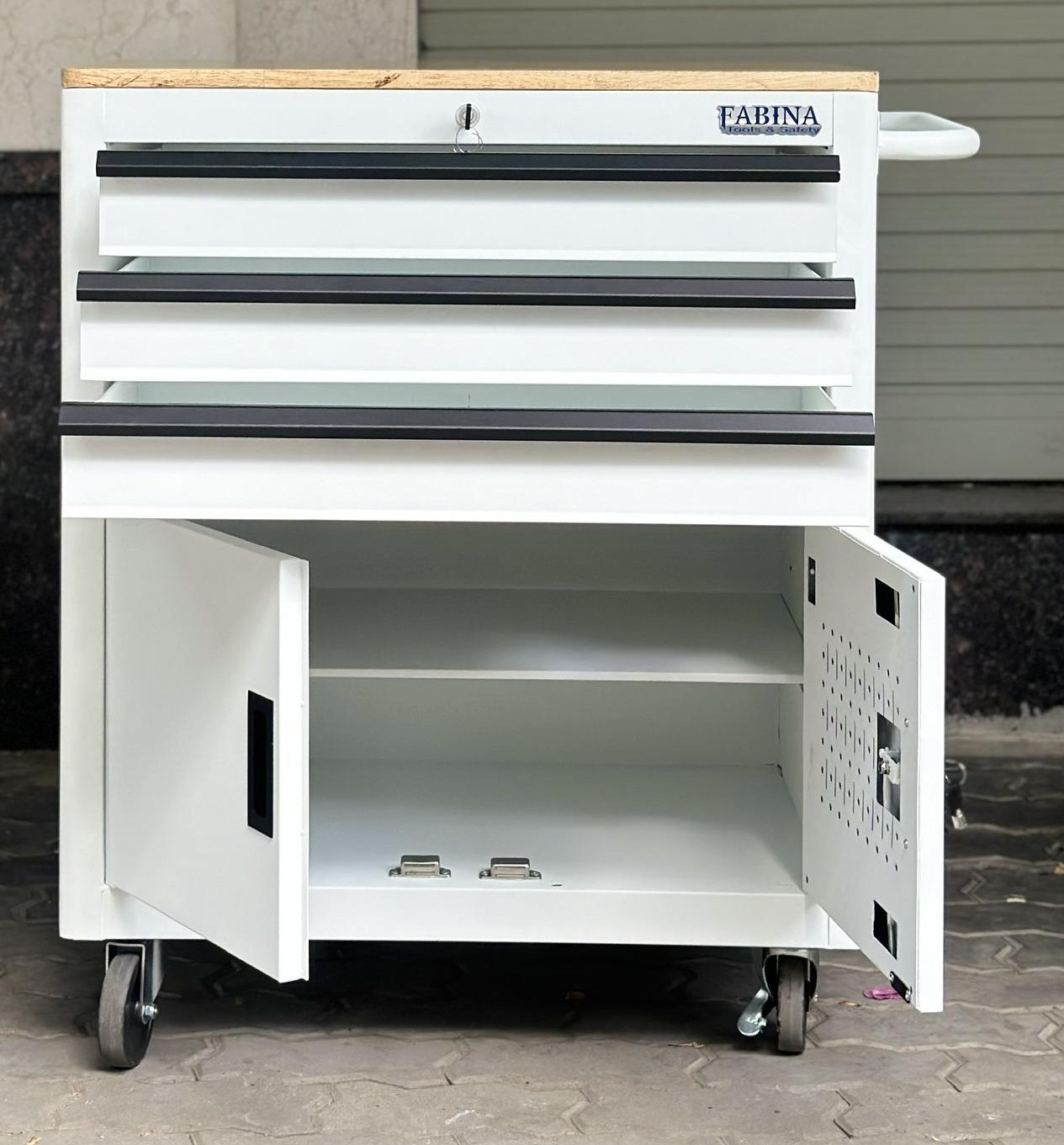 Tủ dụng cụ 3 hộc kéo 2 ngăn chứa màu trắng Fabina