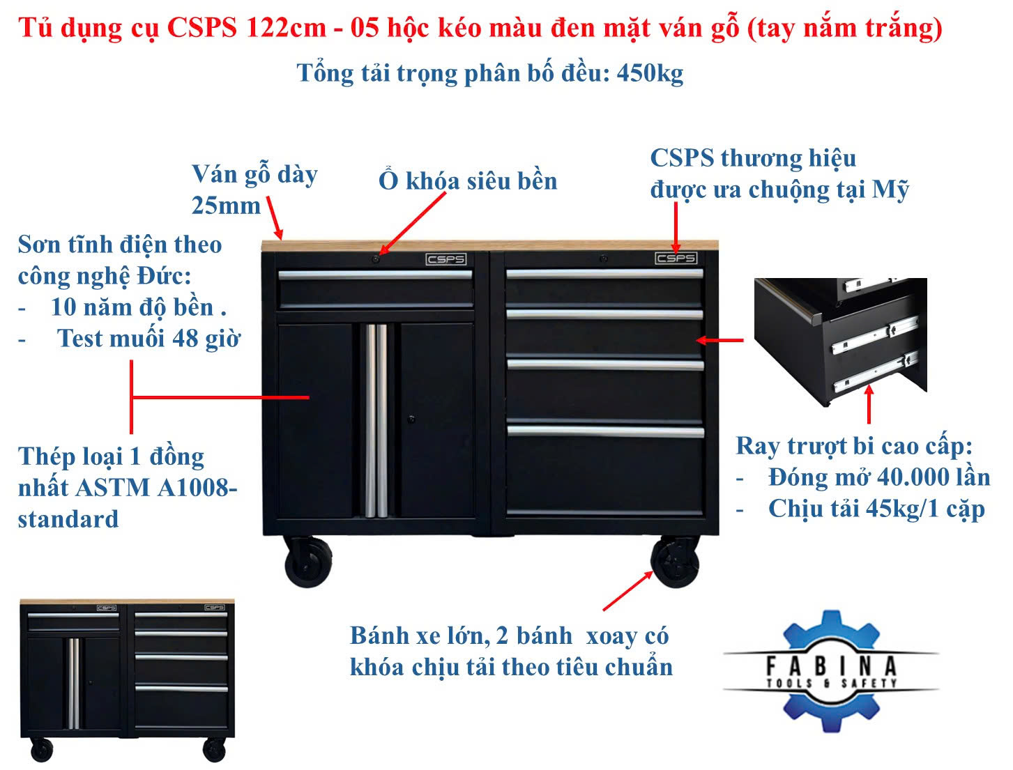 - Từ khóa: Tủ dụng cụ CSPS, Tủ đồ nghề CSPS, Tủ dụng cụ tiêu chuẩn Mỹ, Tủ CSPS