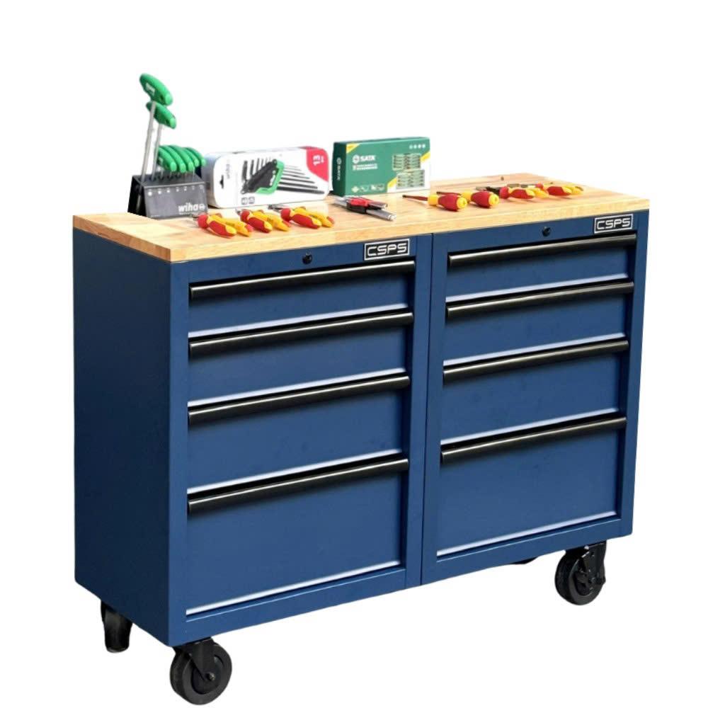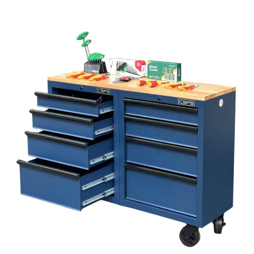 Tủ dụng cụ CSPS 122cm - 08 hộc kéo màu xanh dương mặt ván gỗ