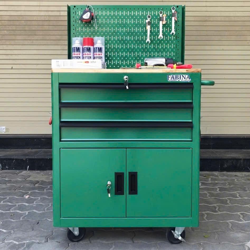 Tủ dụng cụ 3 hộc kéo 2 ngăn chứa màu xám kèm vách lưới Fabina