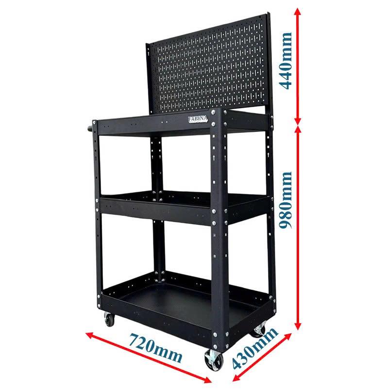 Xe đẩy 3 ngăn cao 980mm kèm vách lưới màu đen FABINA