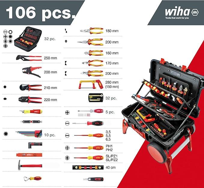 Bộ dụng cụ cách điện 1000V 106 chi tiết Wiha 44128