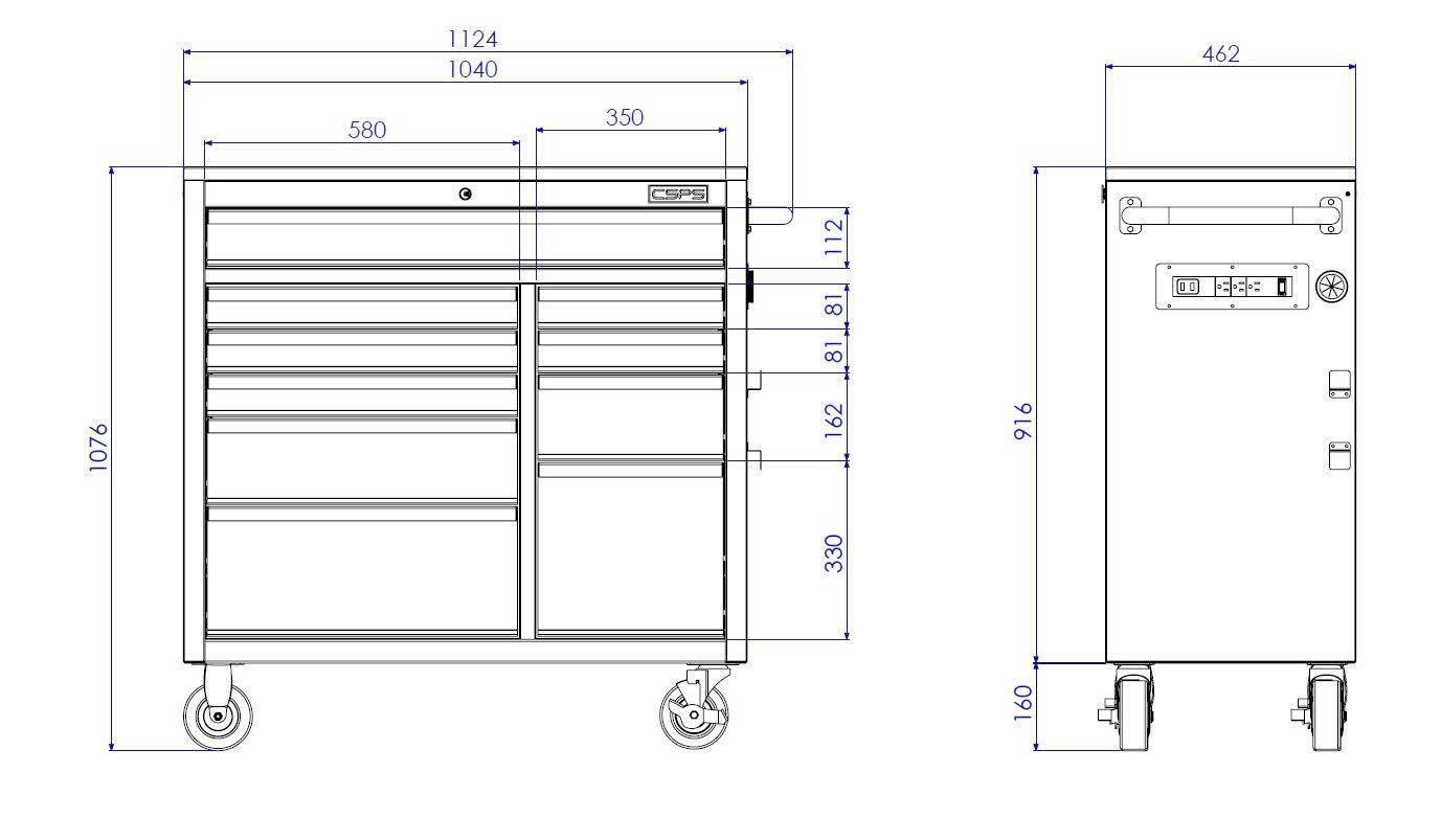 Includes 1 specialized drawer for charging cordless power tools.