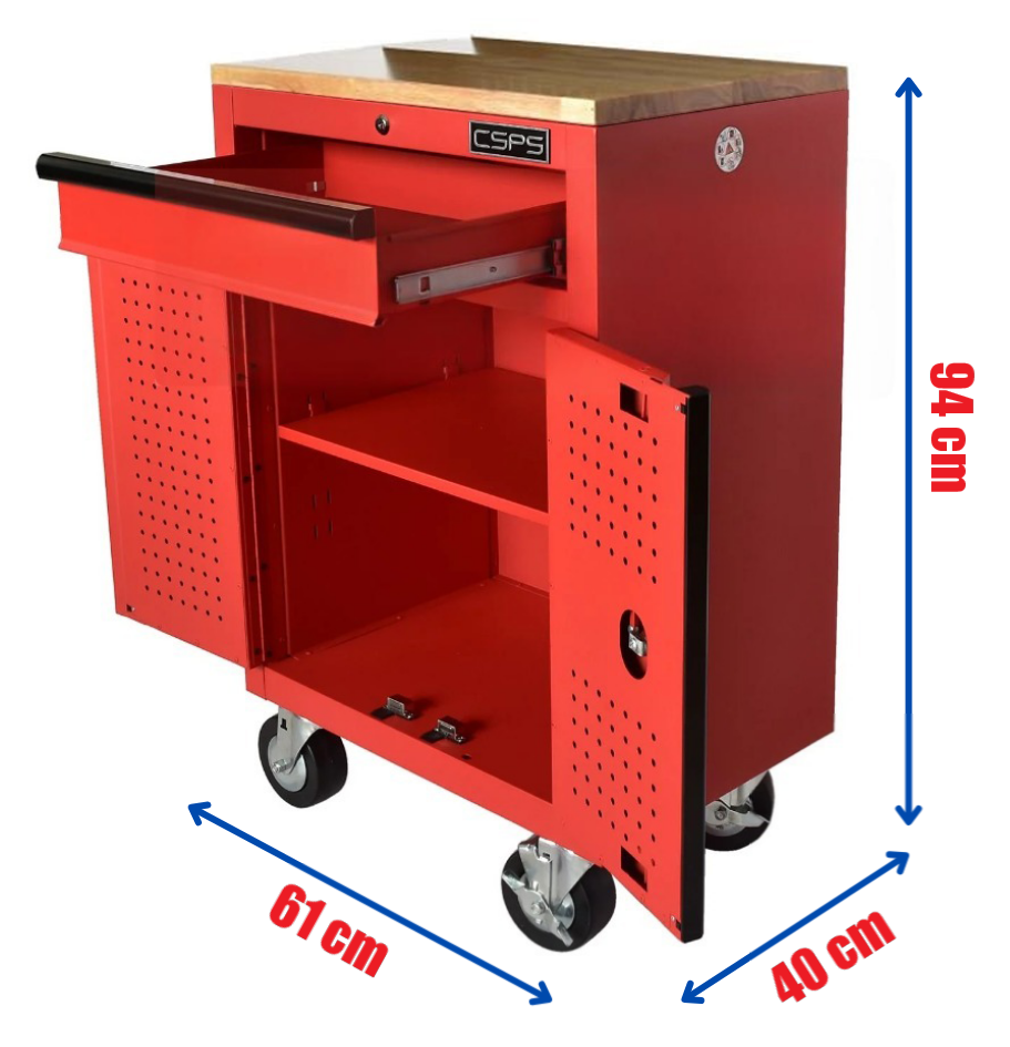 CSPS Red Tool Cabinet 61cm – 1 Drawer with wood panel top