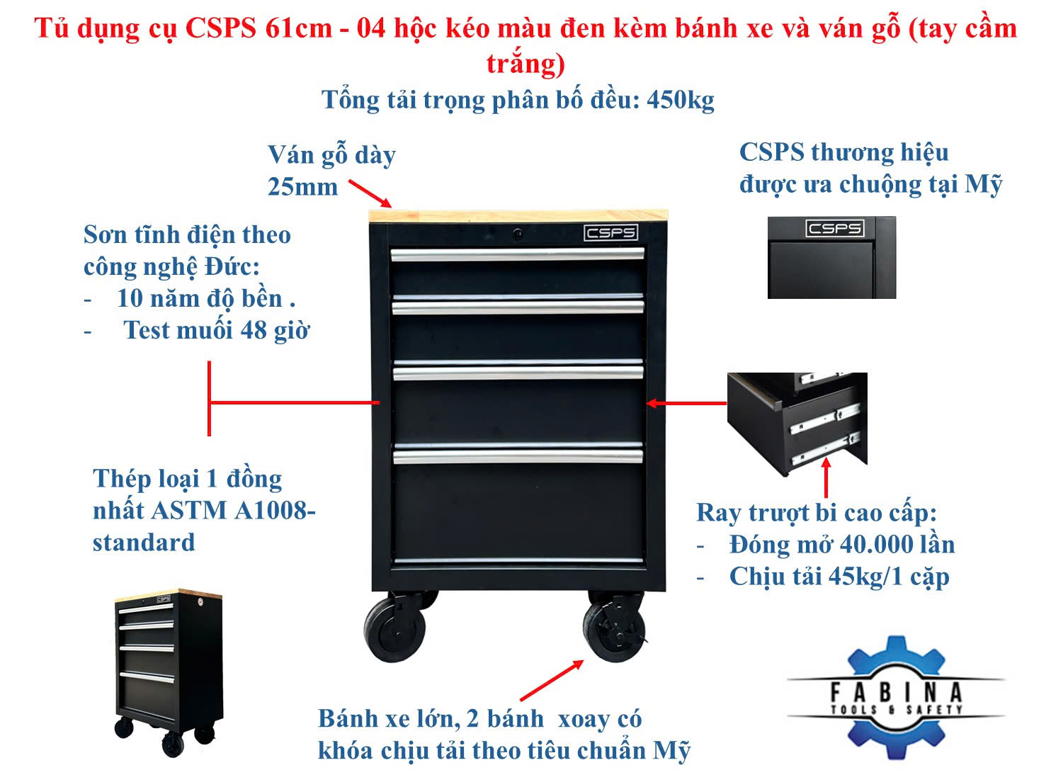 CSPS Blue Tool Cabinet 61cm with wooden top – 04 drawers
