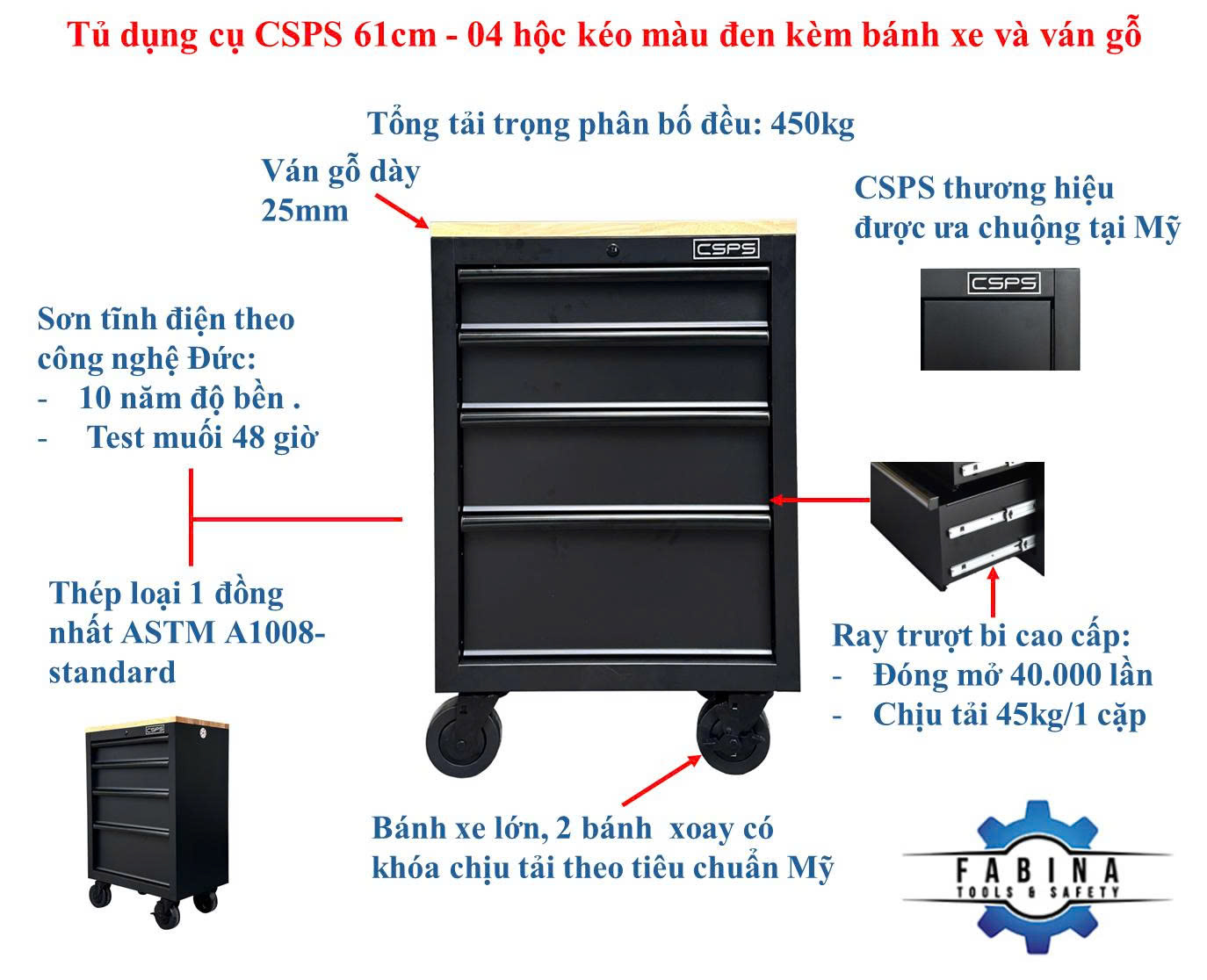 CSPS Blue Tool Cabinet 61cm with wooden top – 04 drawers