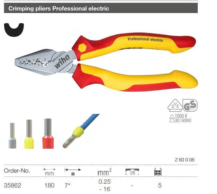 Kìm bấm cos Wiha 35862 180mm cách điện 1000V