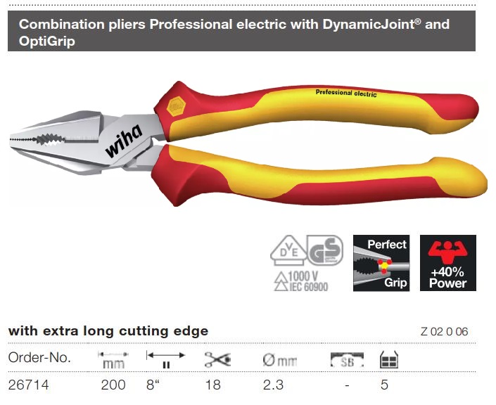 Each Wiha 26714 multi-tool pliers must be tested and meet the IEC 60900 electrical insulation standard, ensuring that users can work safely in electrical environments up to 1,000 V AC.