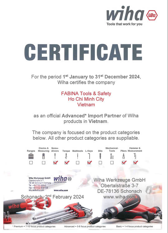 Được thành lập vào năm 1939, năm 2016 Wiha đã được công nhận nằm trong top 100 công ty có quy mô sản xuất lớn và sáng tạo nhất ở Đức với lĩnh vực dụng cụ cầm tay. Vào năm 2014 hãng nhận được giải thưởng sản xuất, xuất sắc là doanh nghiệp SME tốt nhất của nước Đức. Tháng 12 năm 2015 Wiha là hãng sản xuất dụng cụ cầm tay đầu tiên trên thế giới được nhận con dấu AGR (Aktion Gesunder Rücken - German Campaign for Healthier Backs) (Chiến dịch vì sức khỏe cộng đồng) đã được thực hiện bởi một loạt các thử nghiệm về thiết kế xử lý và phân tích tỉ mỉ toàn diện do các chuyên gia chuyên nghiệp kiểm nghiệm. Hầu như đến 70% sản phẩm của hãng là tua vít và đầu vít công nghiệp trải rộng và sử dụng khắp các lĩnh vực từ hàng không, điện lực, ô tô, điện tử, sản xuất & bảo trì…