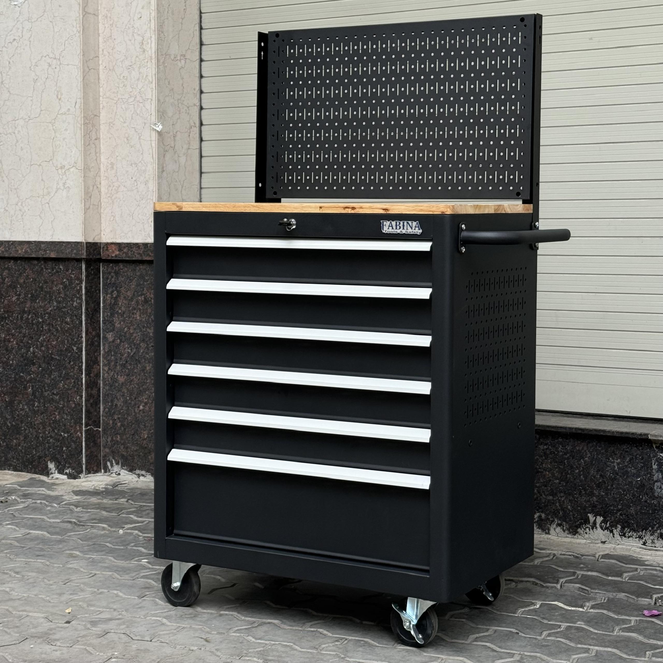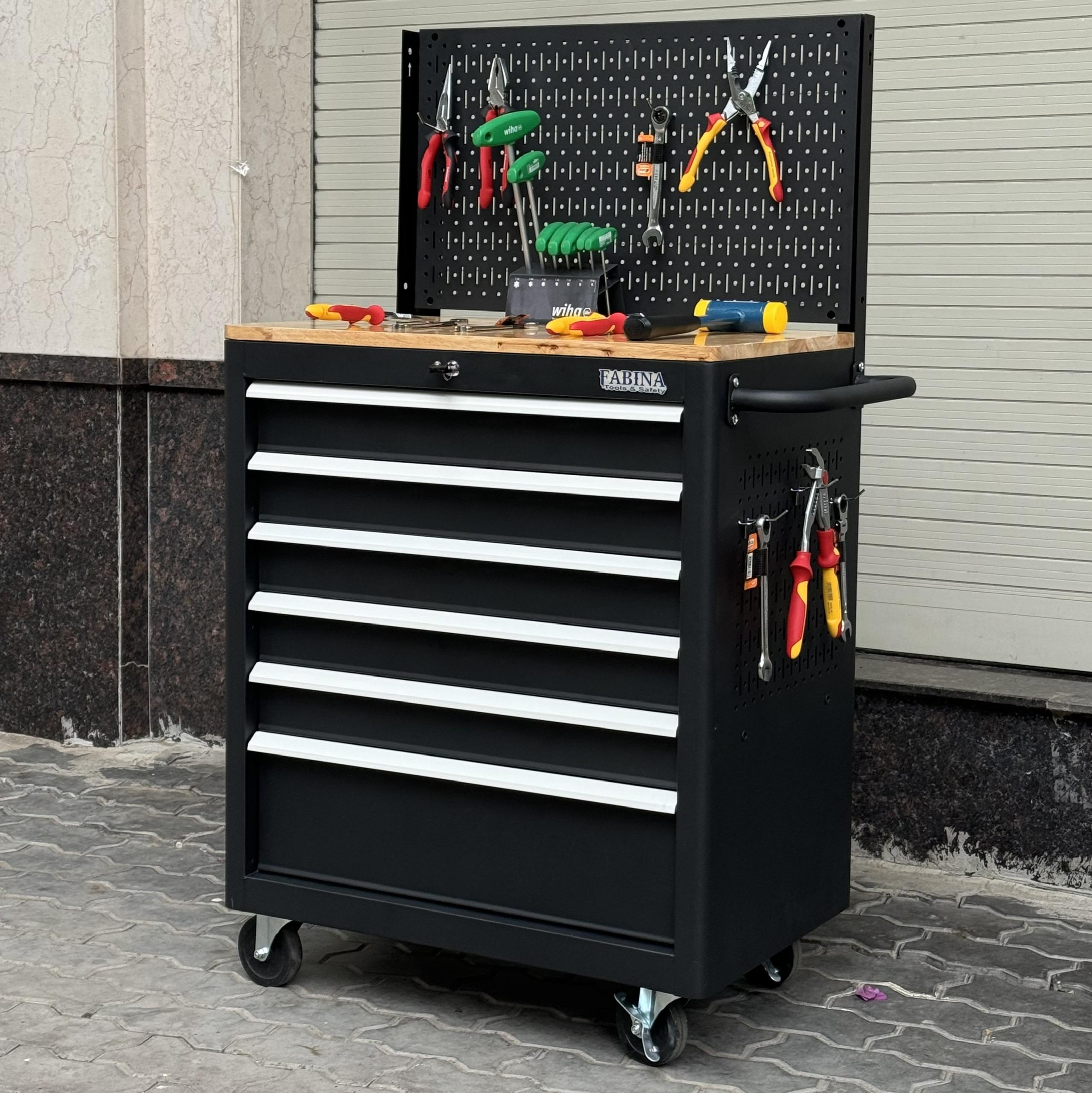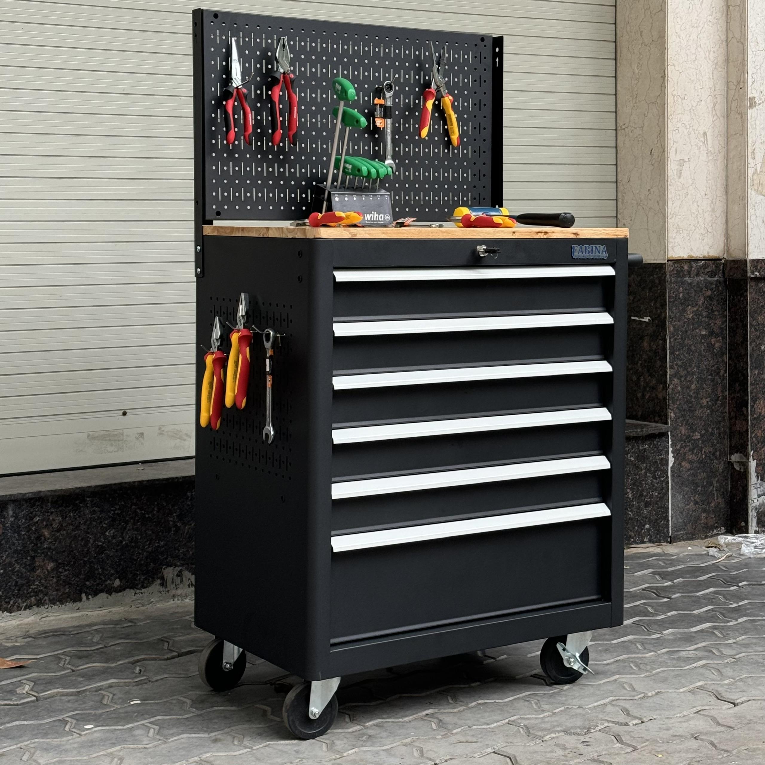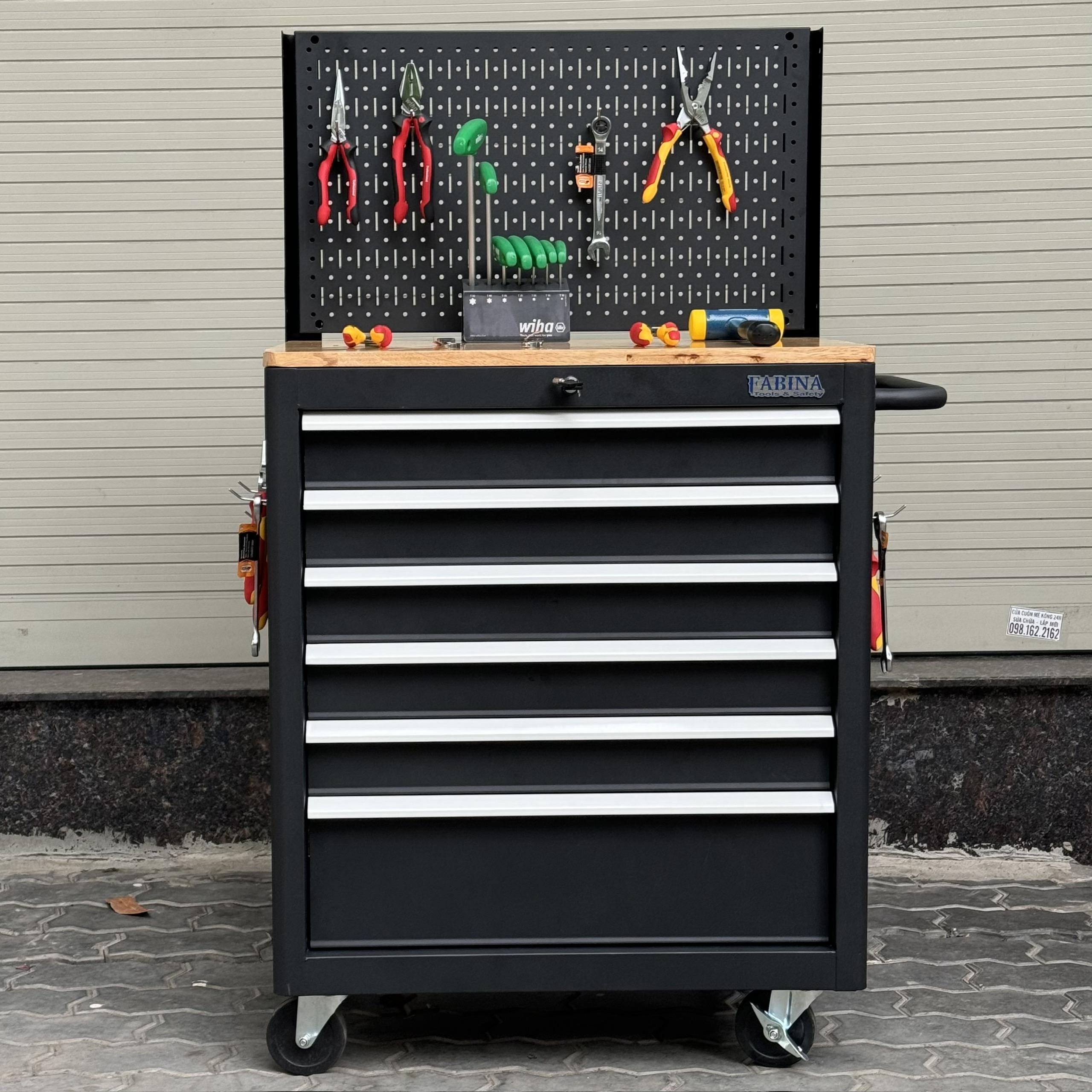 Tủ dụng cụ 6 hộc kéo màu đen kèm vách lưới Fabina