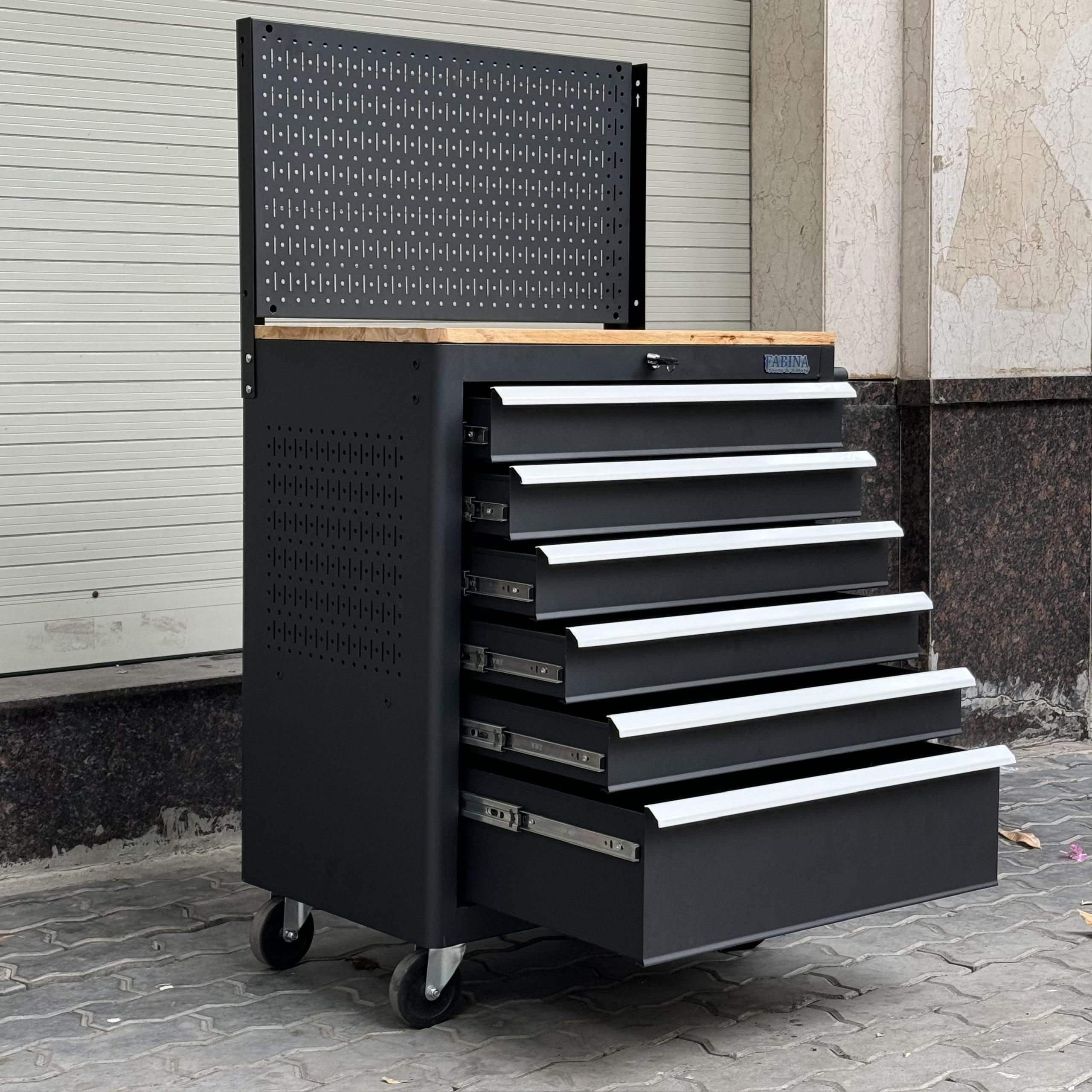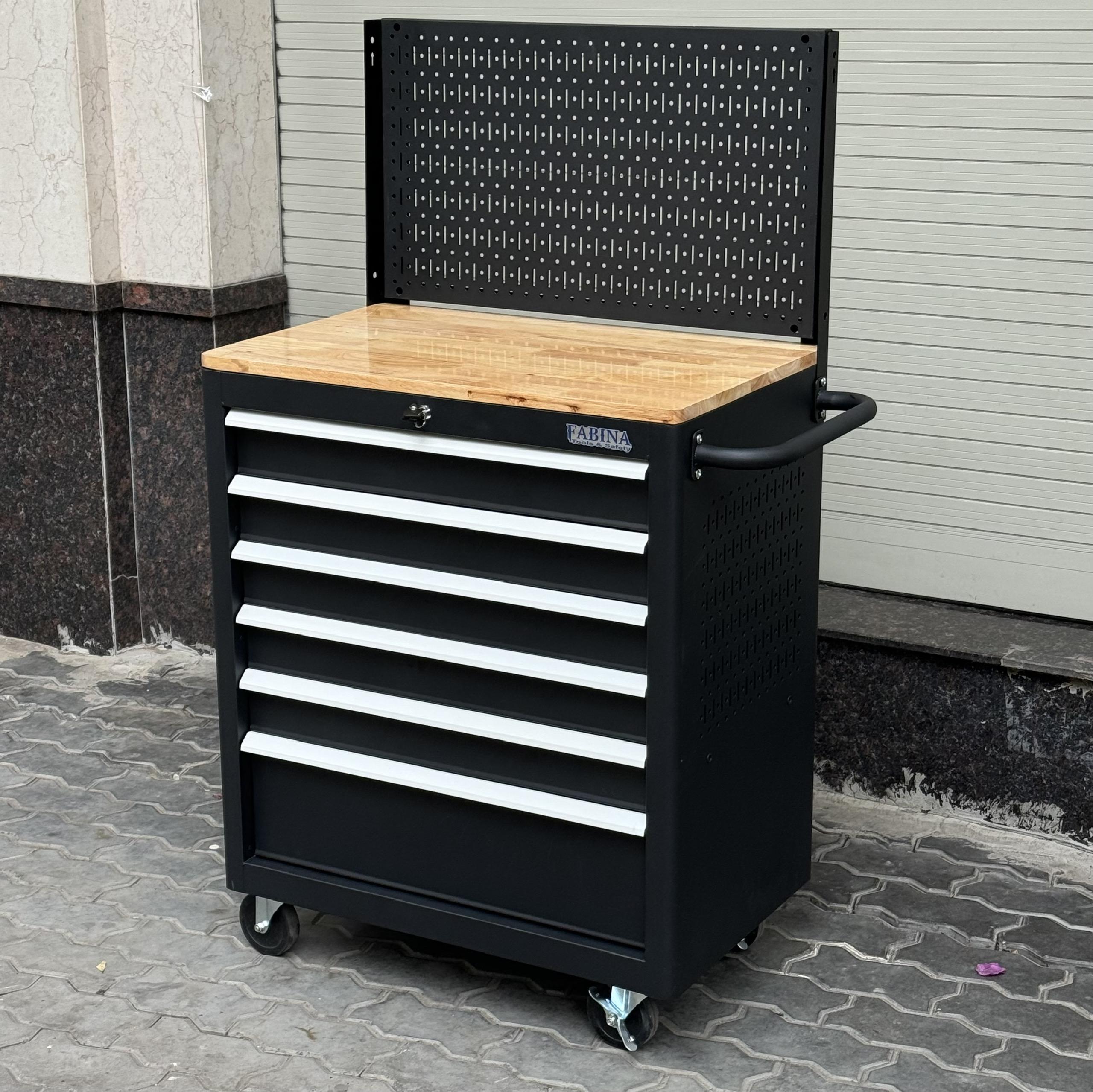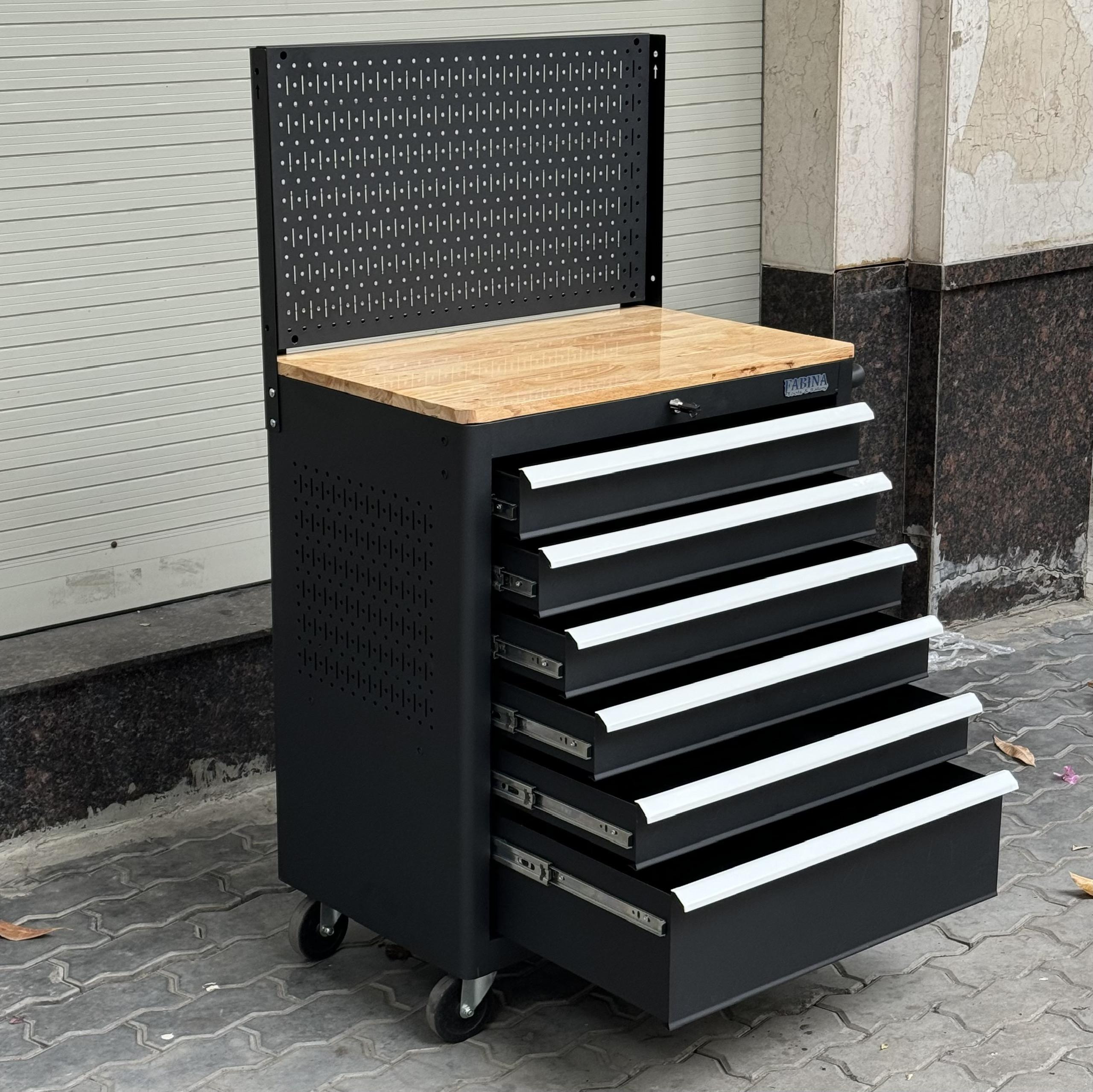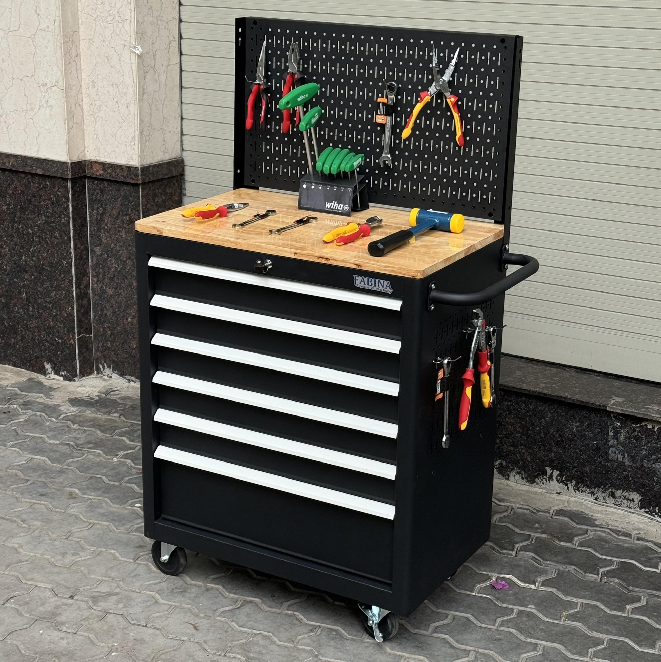 Tủ dụng cụ 6 hộc kéo màu đen kèm vách lưới Fabina