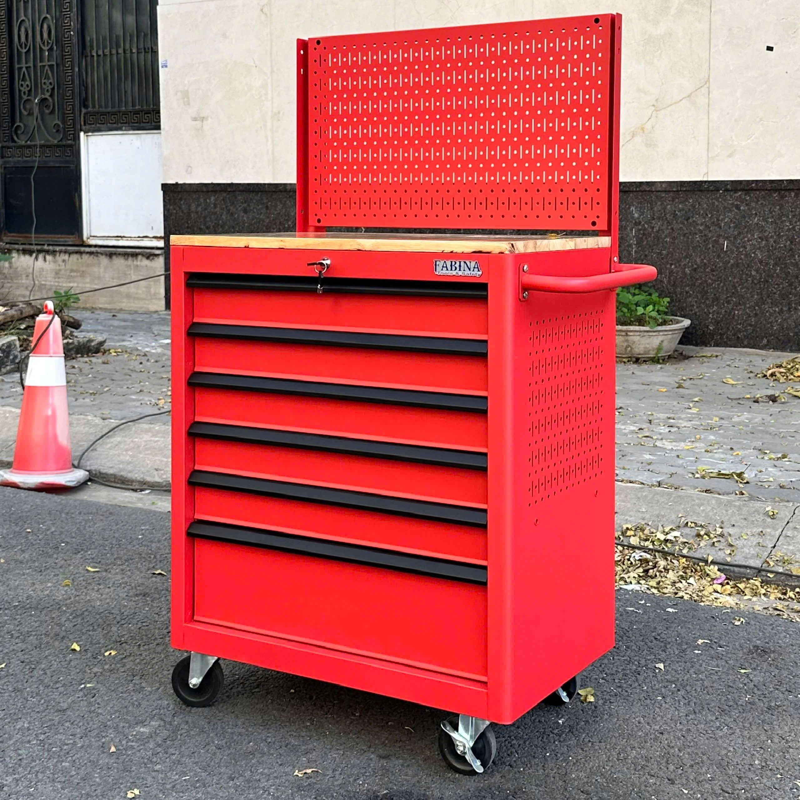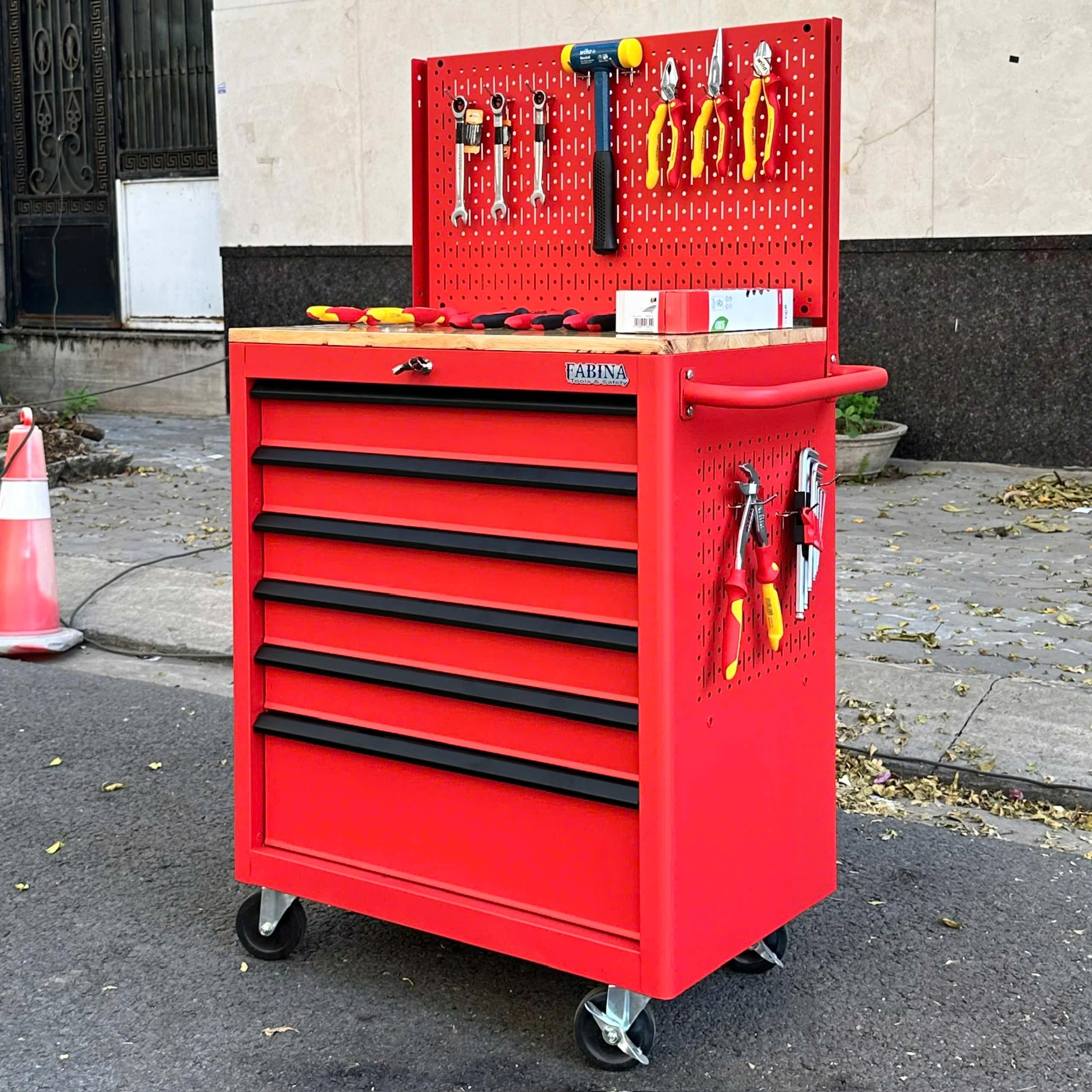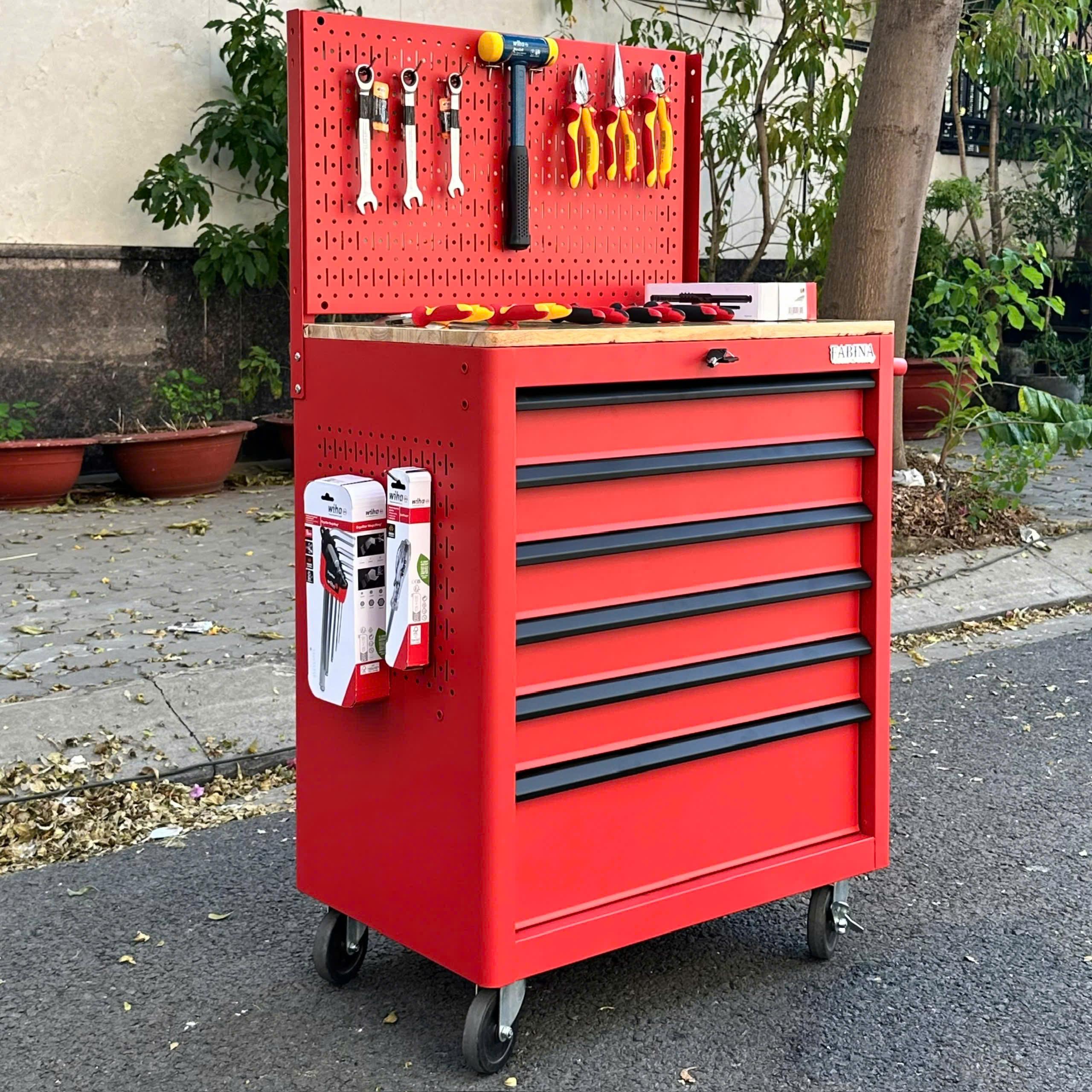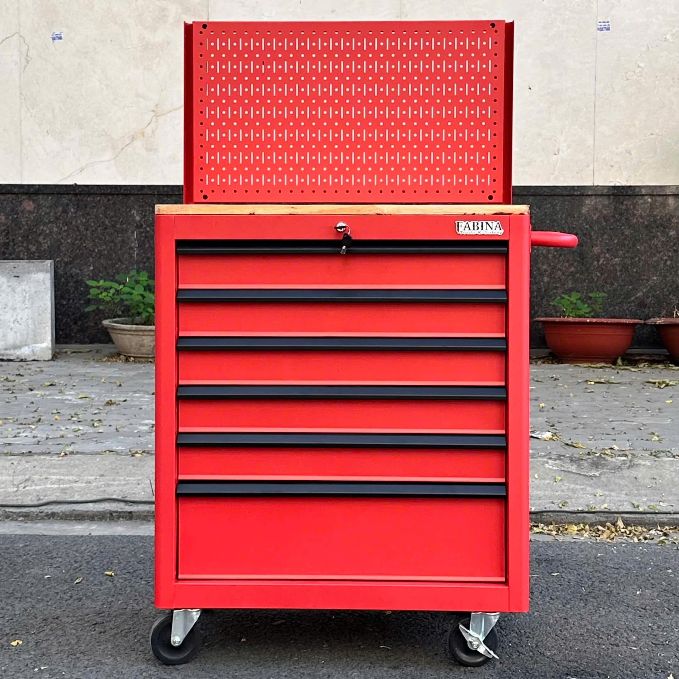 Tủ dụng cụ 6 hộc kéo màu đỏ kèm vách lưới Fabina