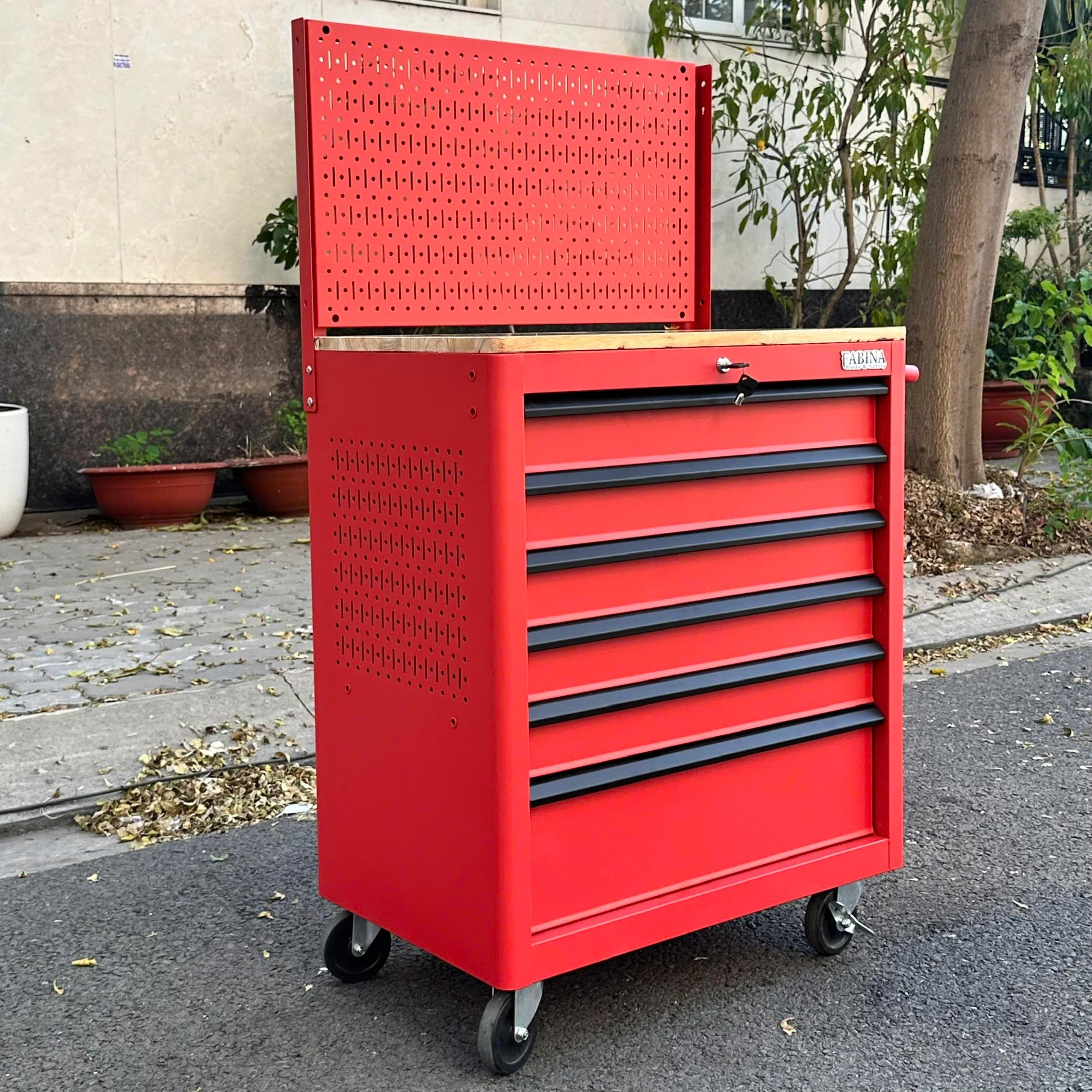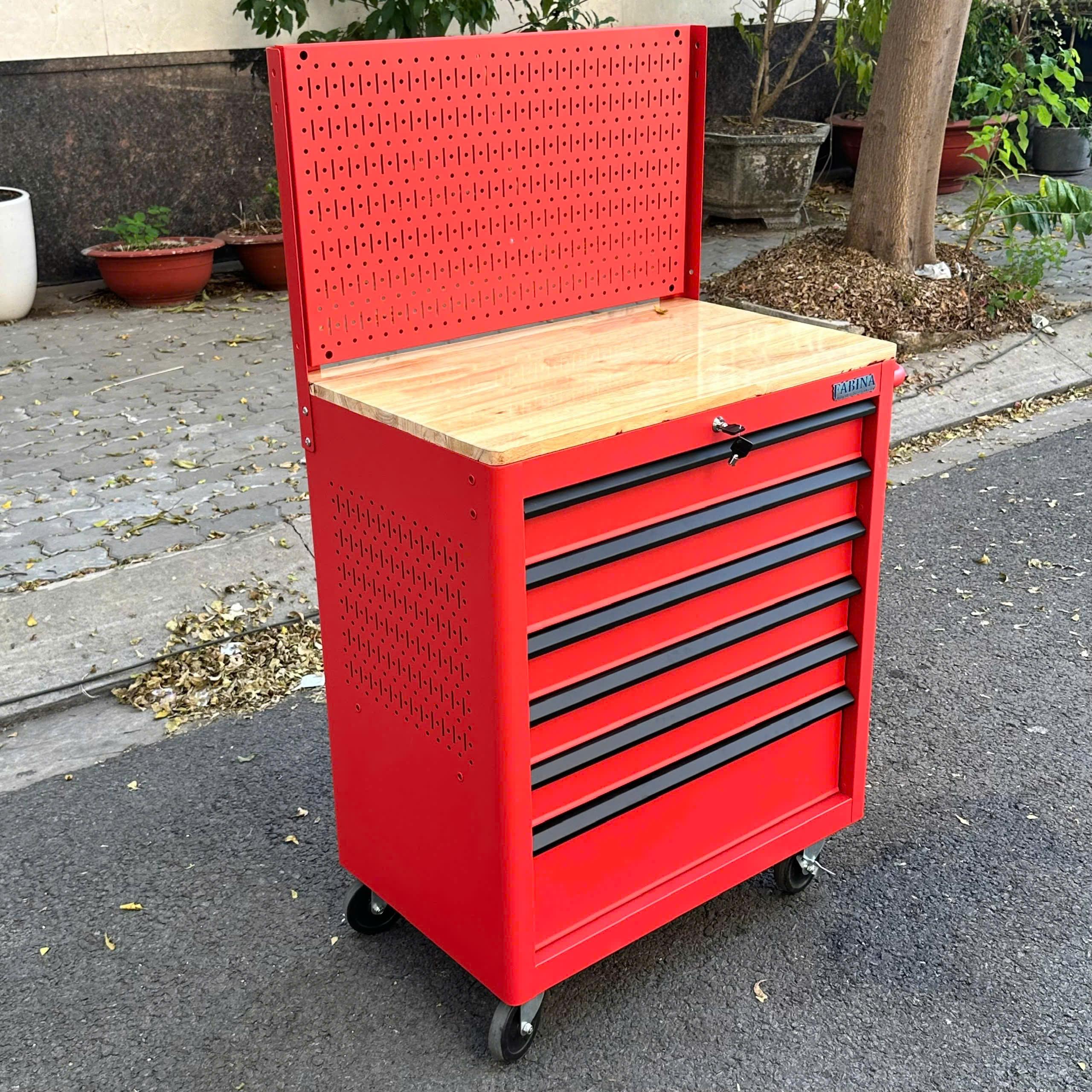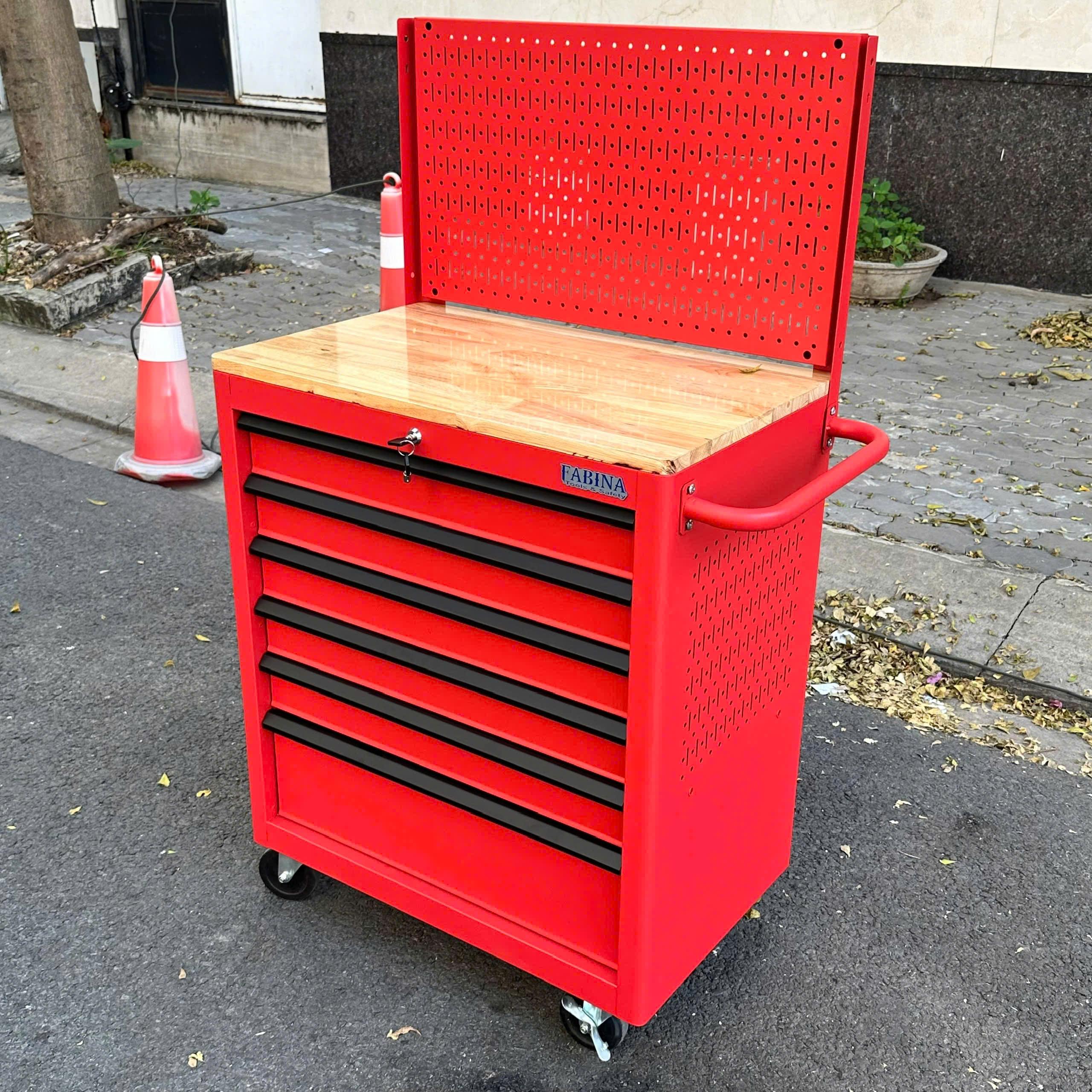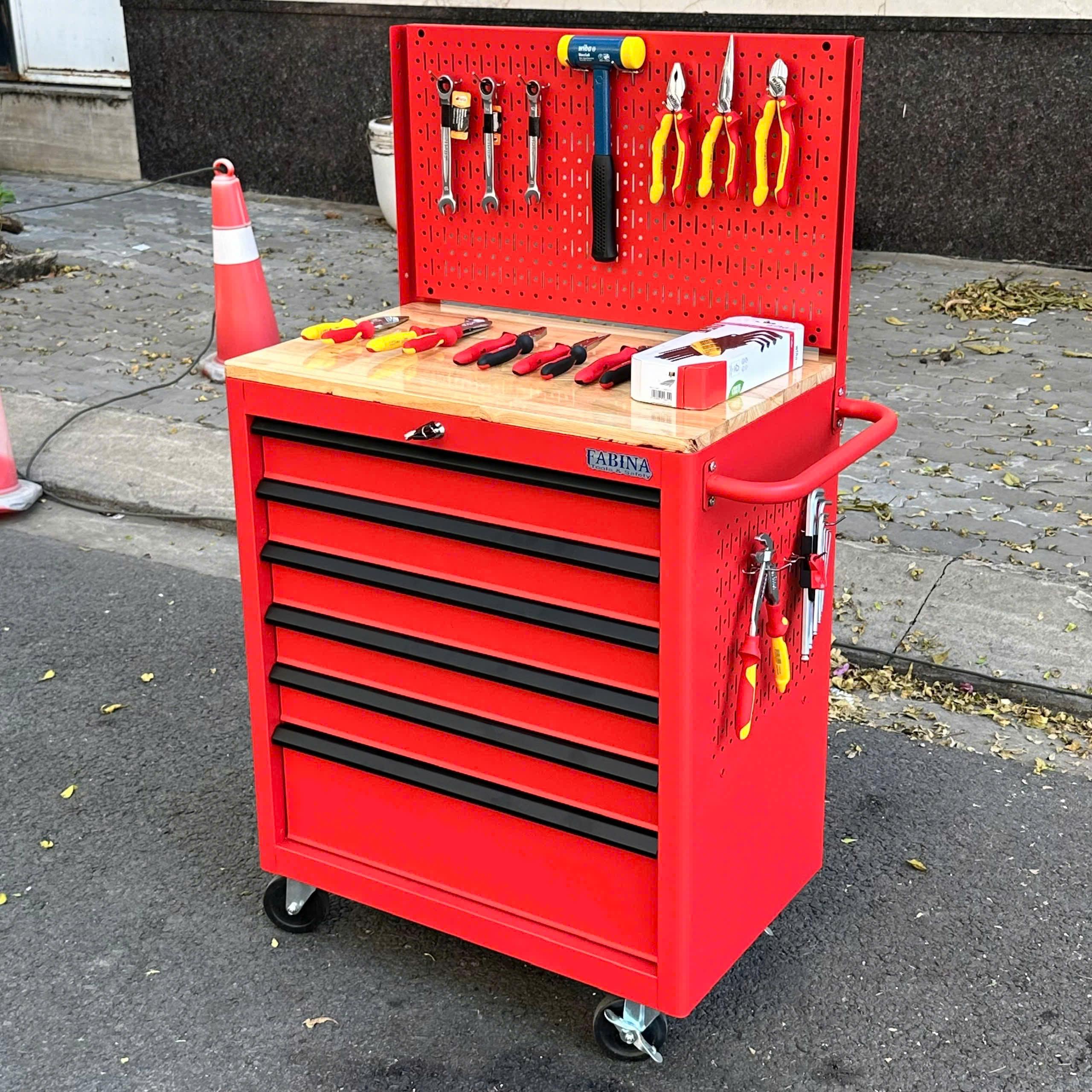 Tủ dụng cụ 6 hộc kéo màu đỏ kèm vách lưới Fabina