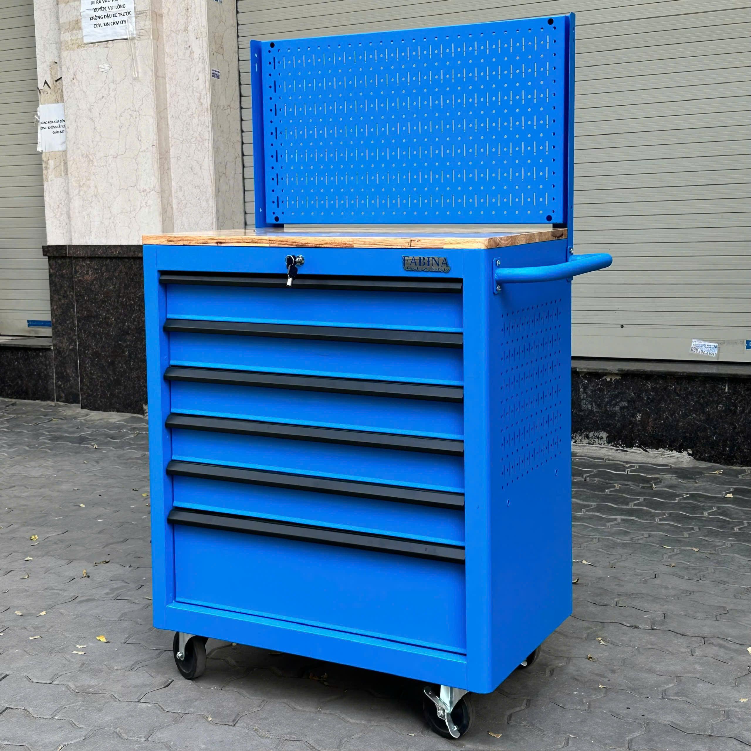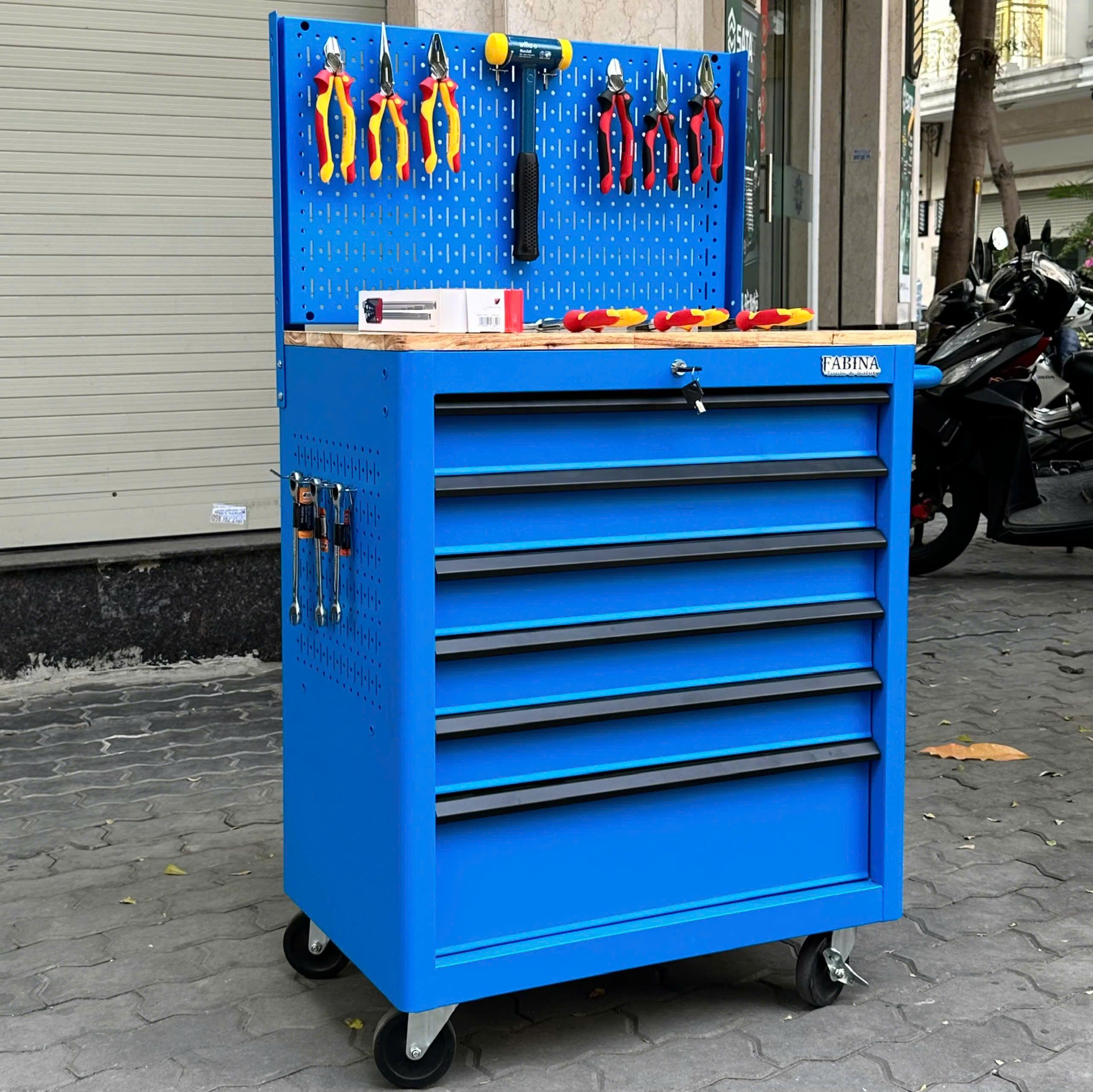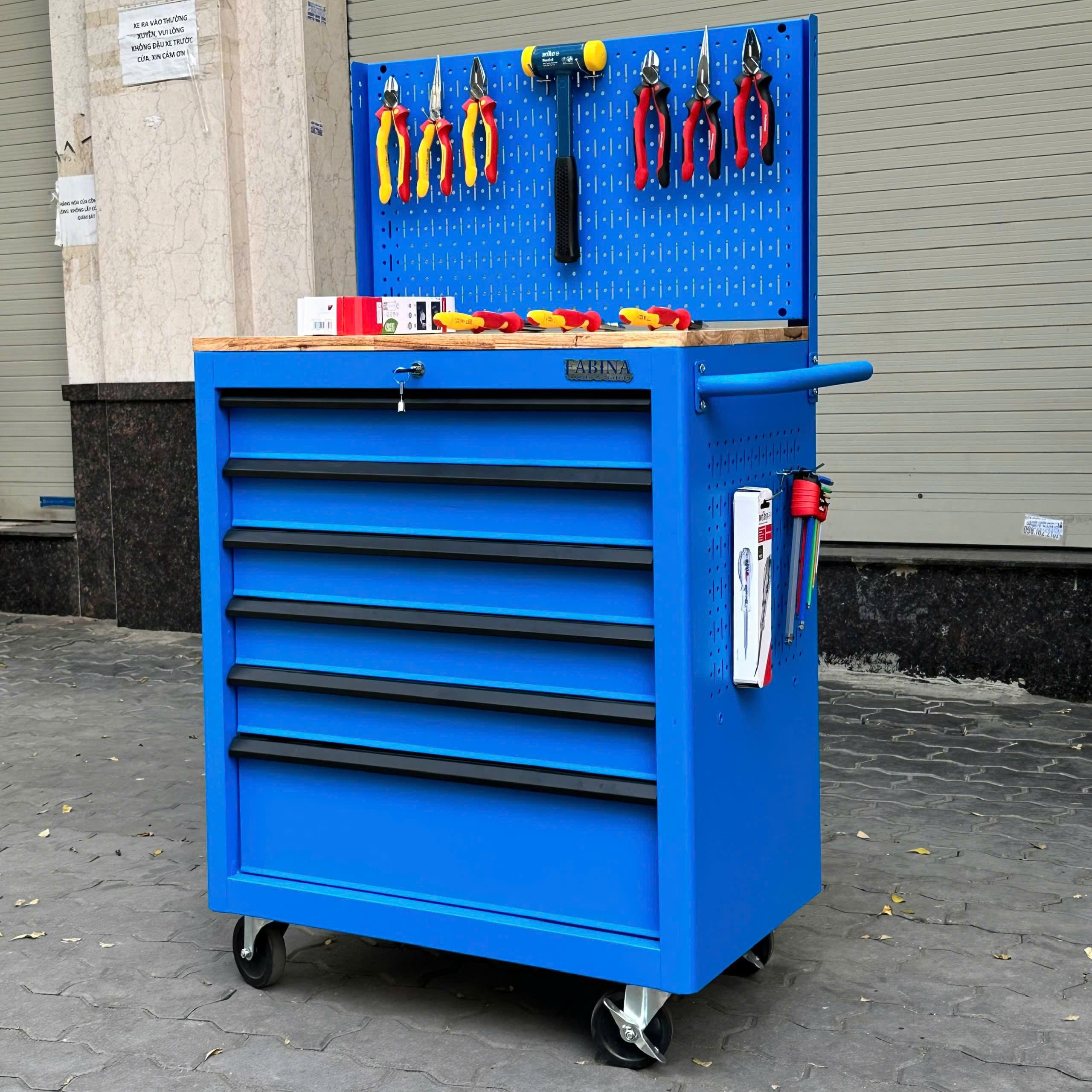 Tủ dụng cụ 6 hộc kéo màu xanh dương kèm vách lưới Fabina