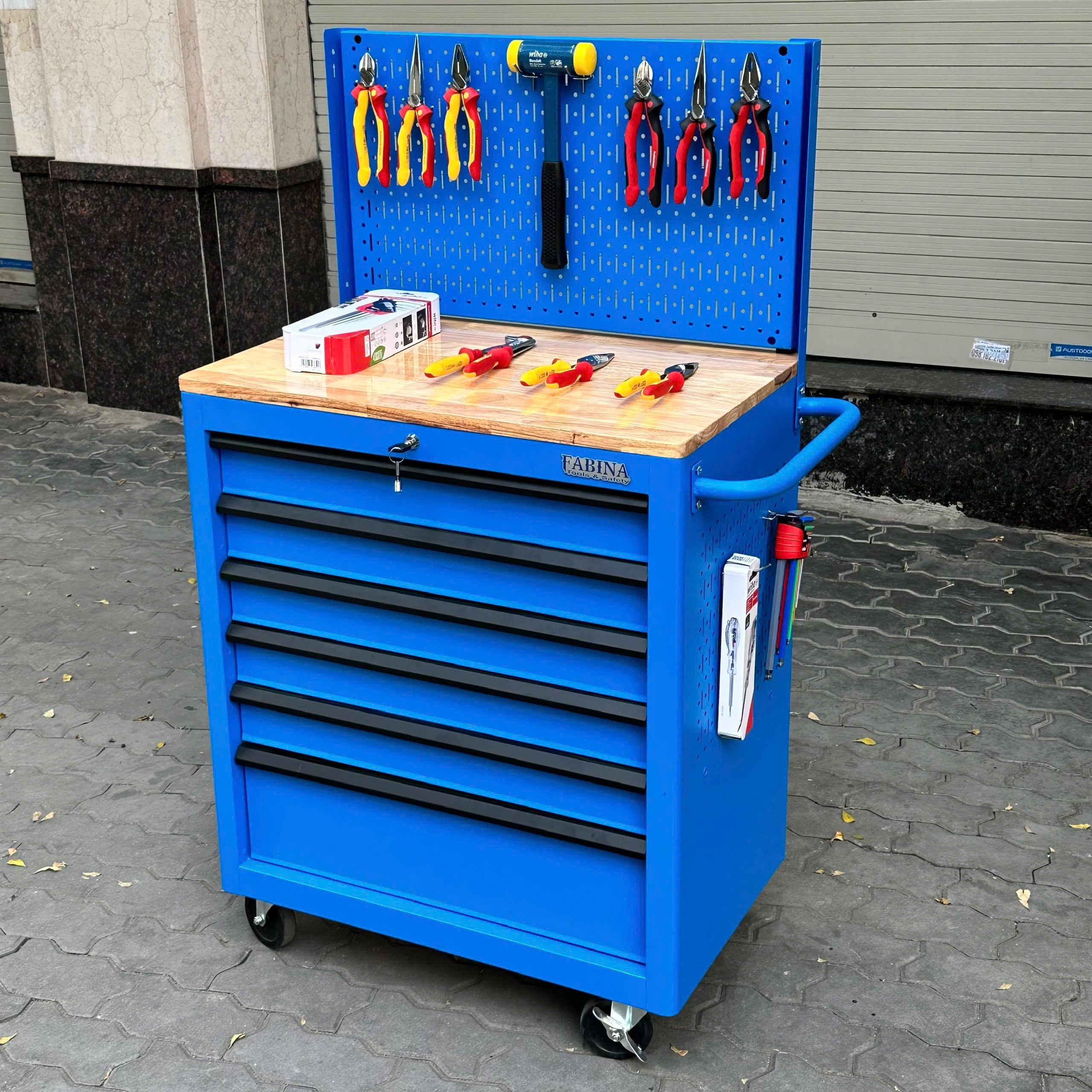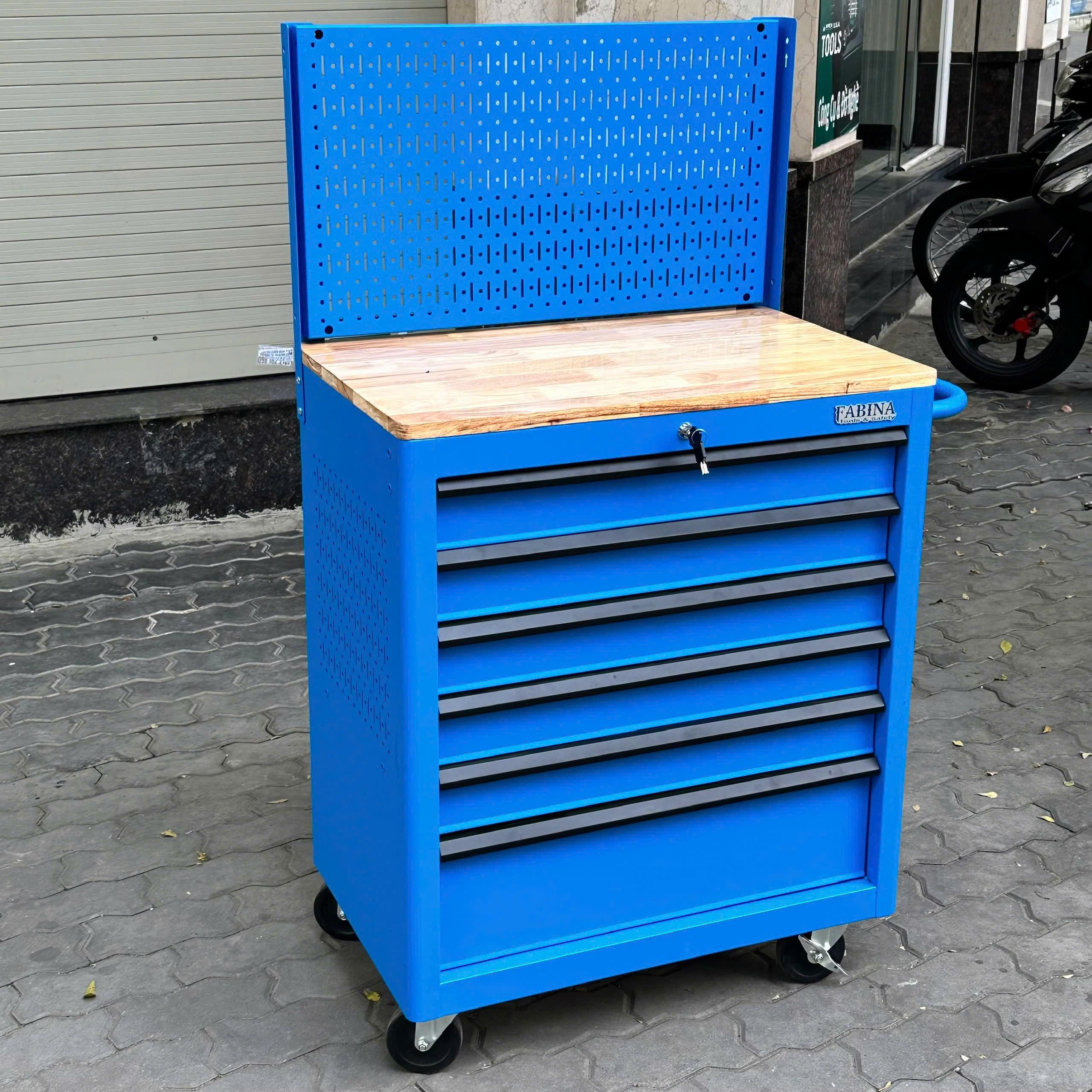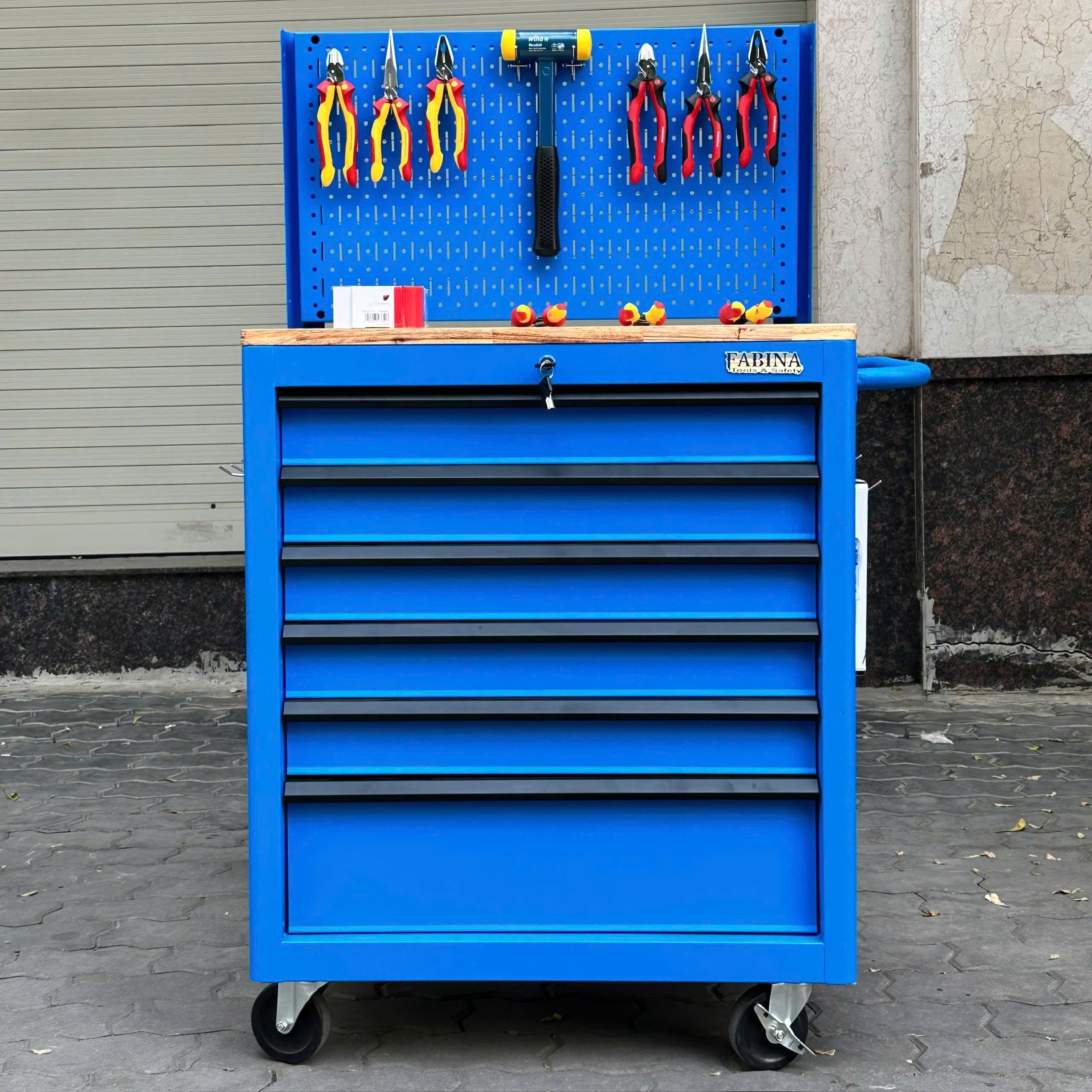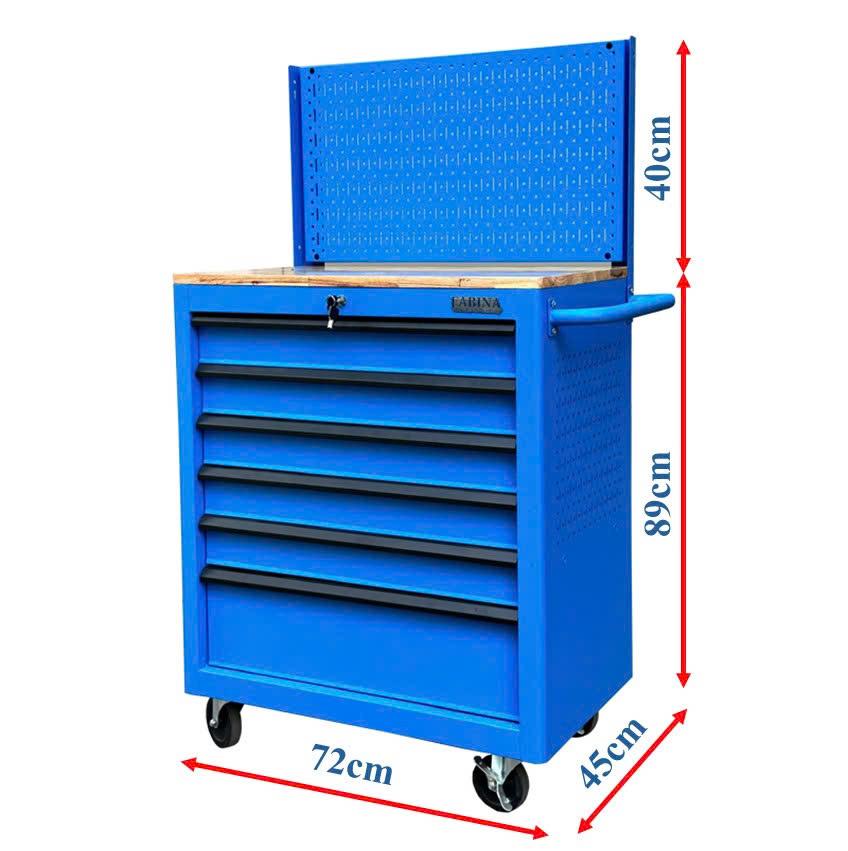 Tủ dụng cụ 6 hộc kéo màu xanh dương kèm vách lưới Fabina