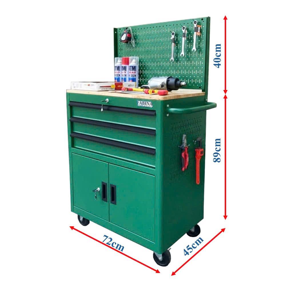 Tủ dụng cụ 6 hộc kéo màu xanh lá kèm vách lưới Fabina