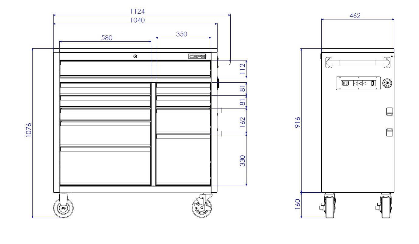 Tủ dụng cụ Tủ dụng cụ CSPS 104cm - 10 hộc kéo ván gỗ, giúp bạn sắp xếp khu vực làm việc hiệu quả, là một trang bị cần thiết cho nhà máy, garage, cửa hàng hay văn phòng làm việc / CSPS tool cabinet 104 cm – 10 drawers wood top which is suitable for workshop, factory, garage, shop, office… will help you organize working area efficiently.