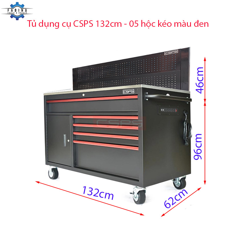 Tủ dụng cụ Tủ dụng cụ CSPS 132cm - 05 hộc kéo màu đen, giúp bạn sắp xếp khu vực làm việc hiệu quả, là một trang bị cần thiết cho nhà máy, garage, cửa hàng hay văn phòng làm việc / CSPS tool cabinet 132 cm – 05 drawers which is suitable for workshop, factory, garage, shop, office… will help you organize working area efficiently.