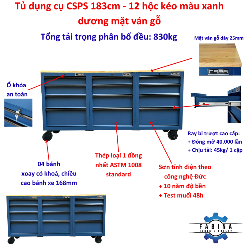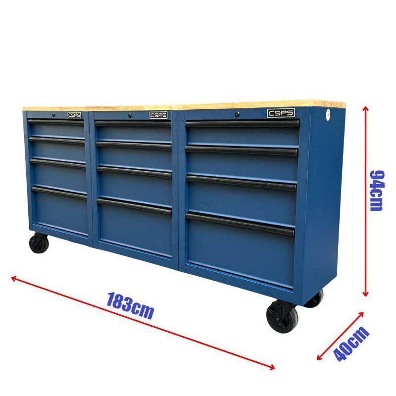 Tủ dụng cụ CSPS 183cm - 12 hộc kéo màu xanh dương mặt ván gỗ