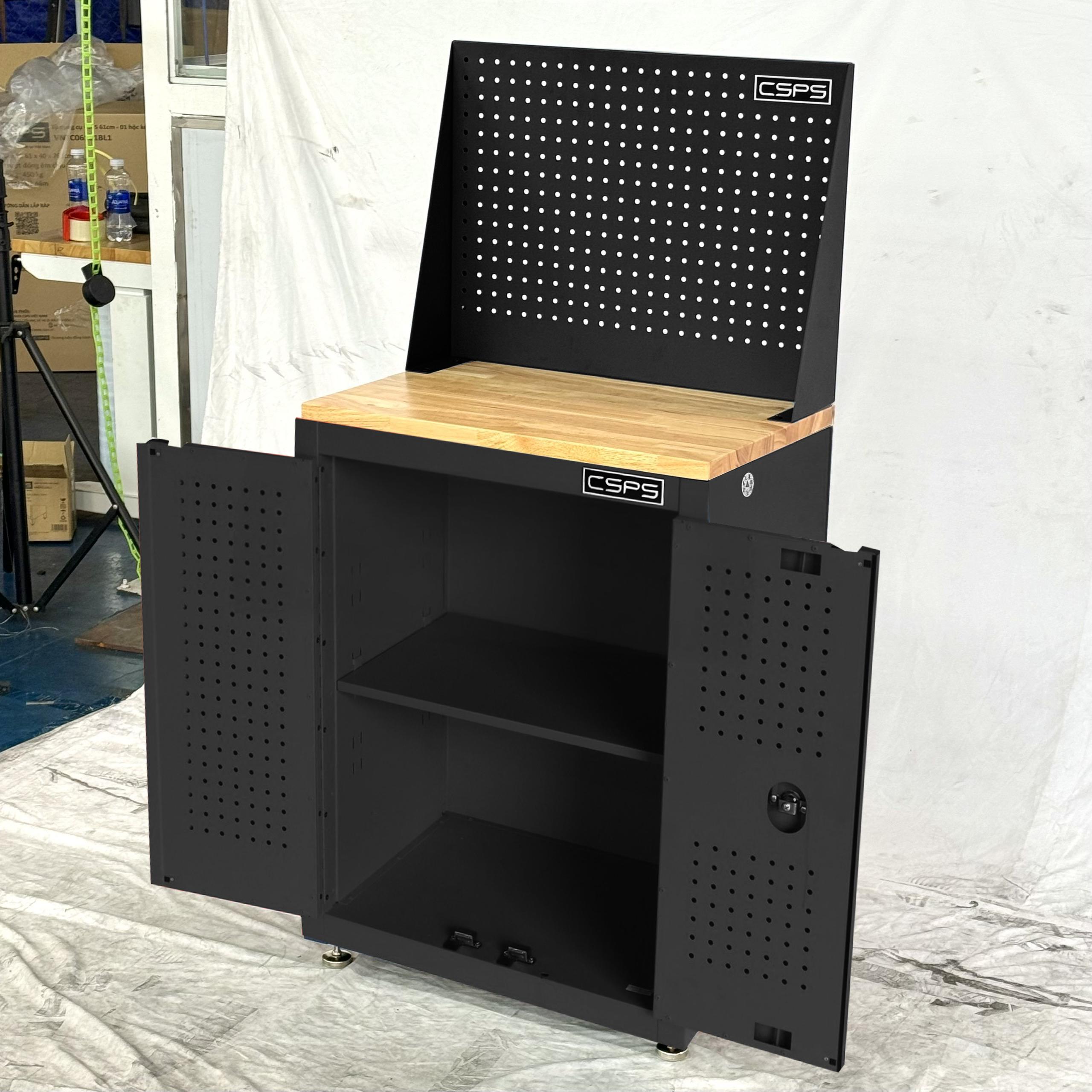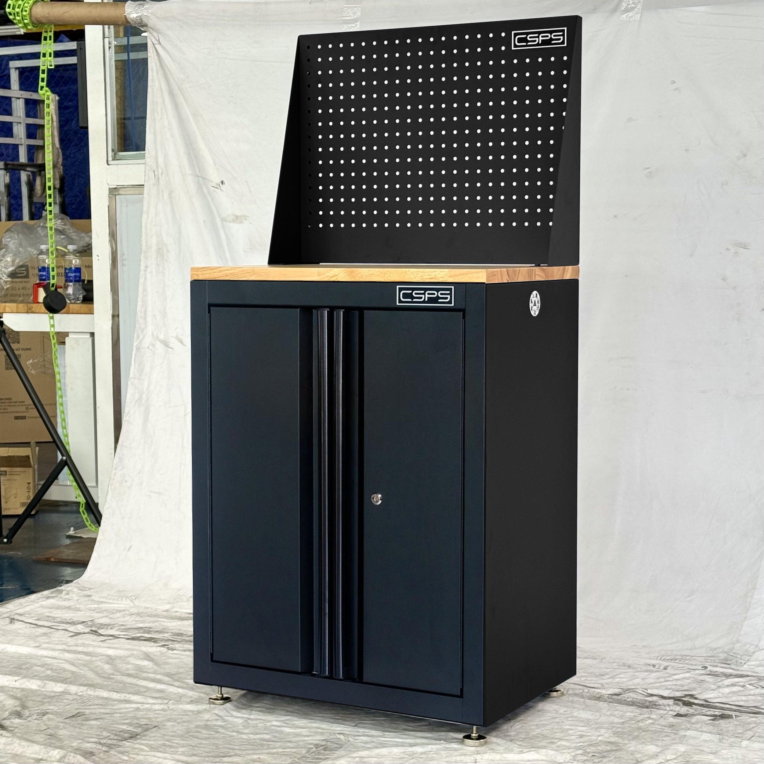 Tủ dụng cụ CSPS 61cm - 00 hộc kéo màu đen kèm ván gỗ vách lưới và chân tăng chỉnh