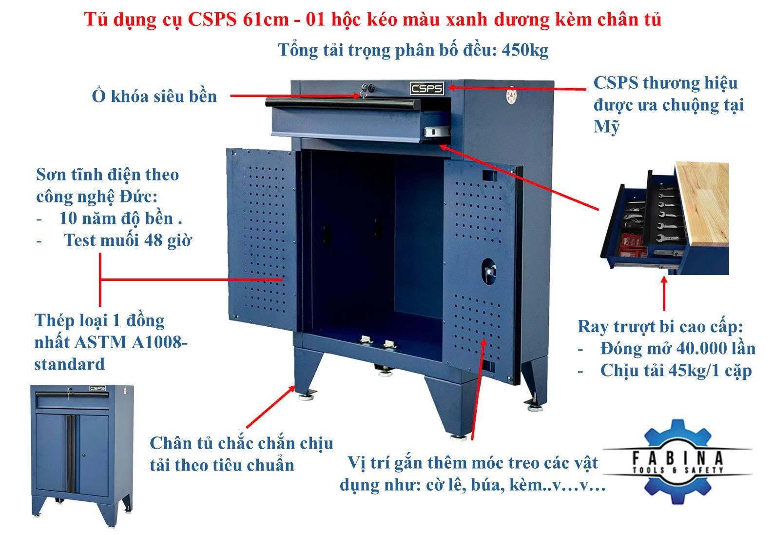 Tủ dụng cụ CSPS 61cm - 01 hộc kéo màu xanh dương kèm chân tủ