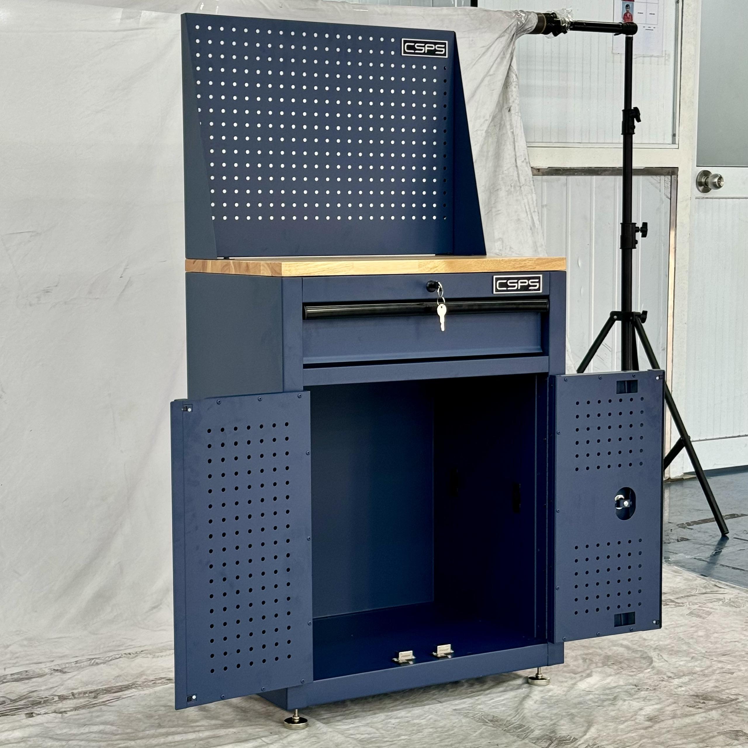 Tủ dụng cụ CSPS 61cm - 01 hộc kéo màu xanh dương kèm ván gỗ vách lưới và chân tăng chỉnh