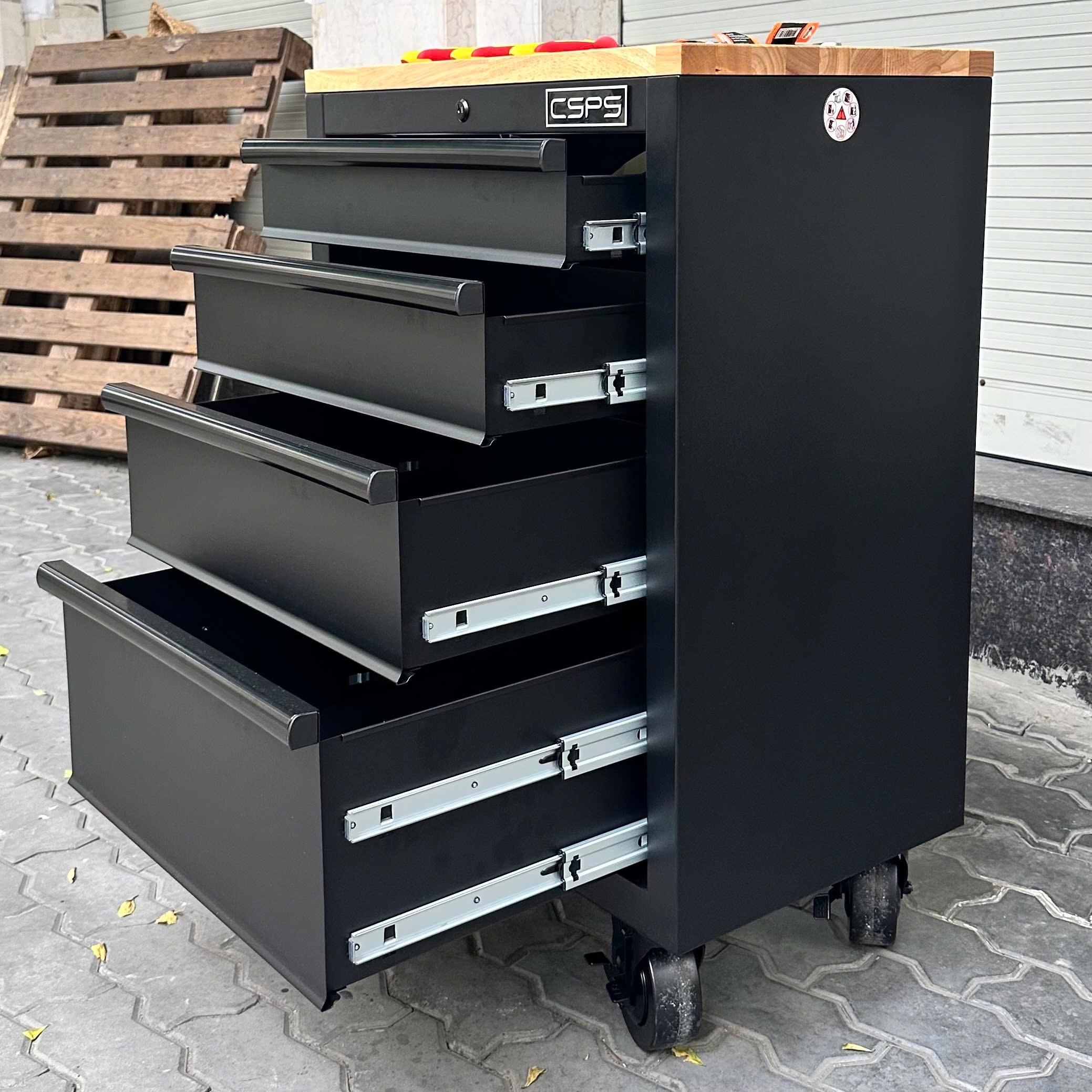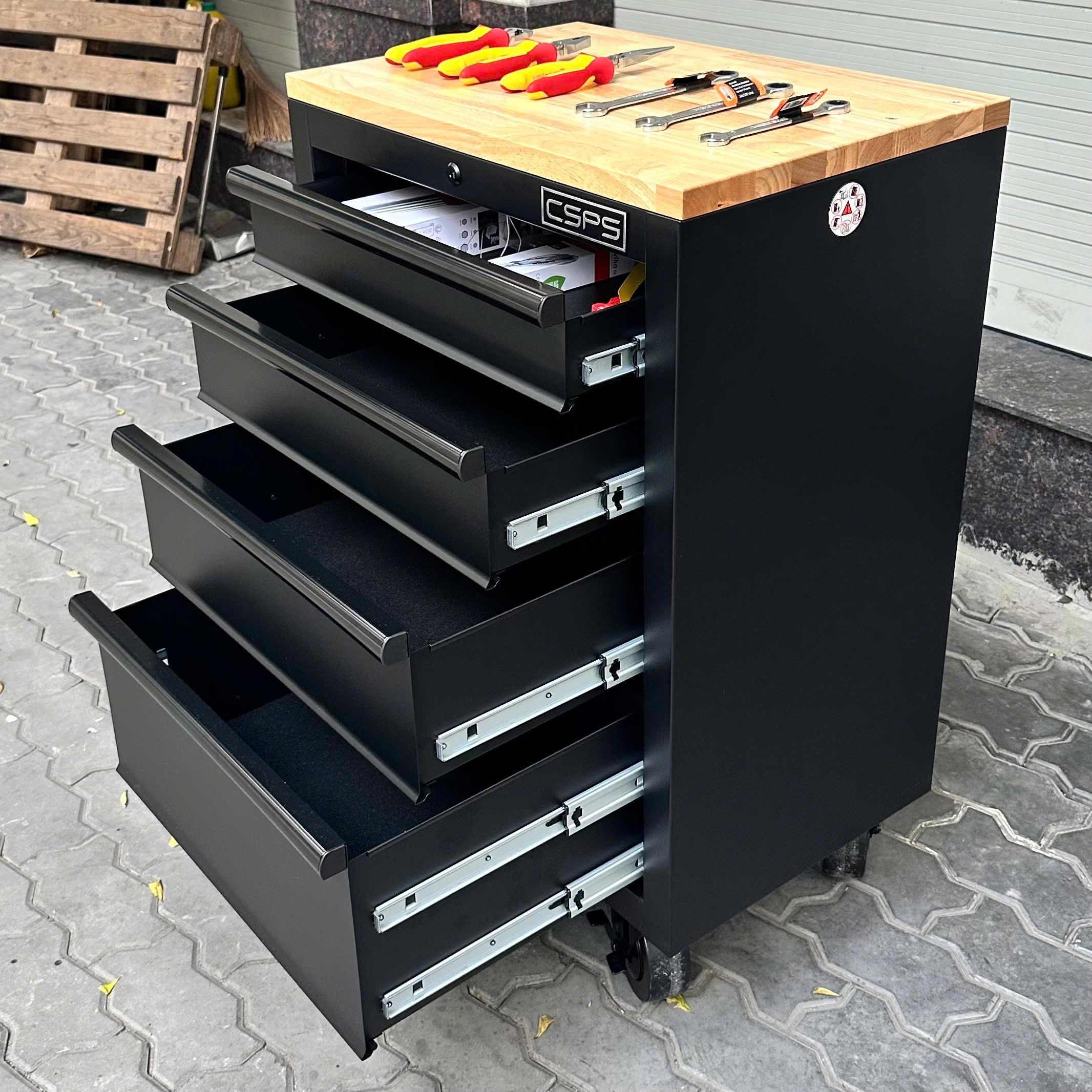 Tủ dụng cụ CSPS 61cm - 04 hộc kéo màu đen kèm bánh xe và ván gỗ